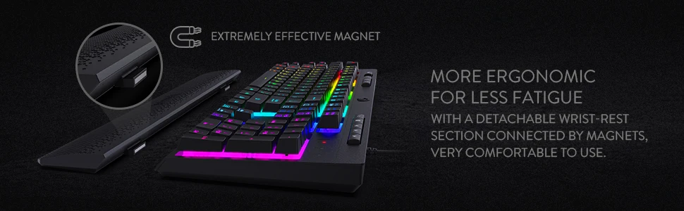 *Reposacabezas desmontable: diseño ergonómico con un reposamuñecas desmontable que se conecta con imanes lo que permite una fácil instalación.El reposamuñecas ofrece comodidad adicional para un uso prolongado.