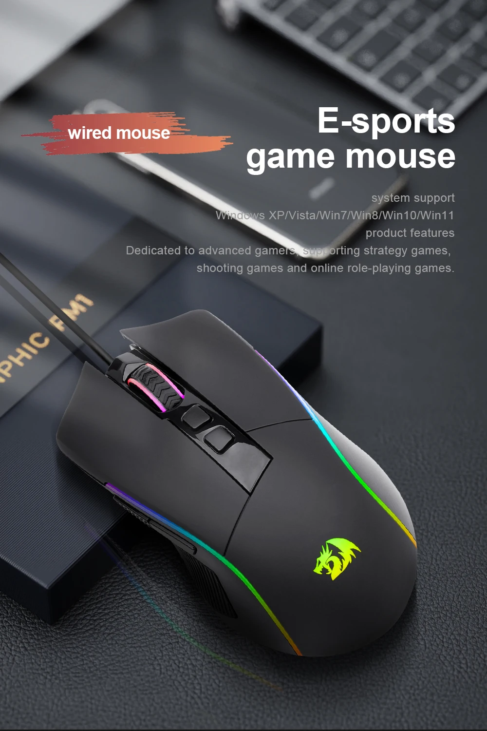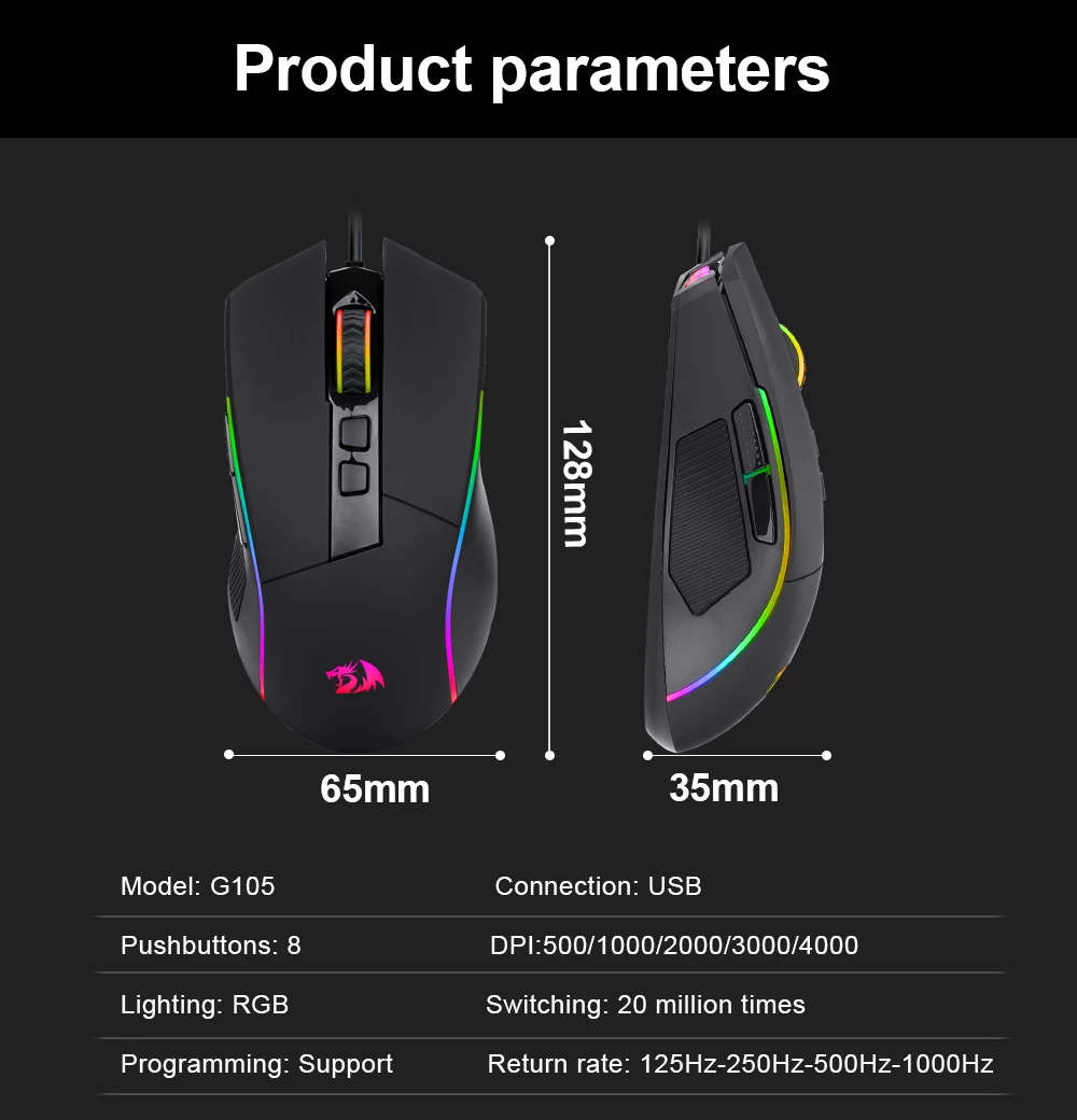 Comprar REDRAGON Lonewolf G105 RGB USB ratón para juegos con cable 8000 DPI 8 botones ratones programables ergonómicos para ordenador portátil PC Gamer