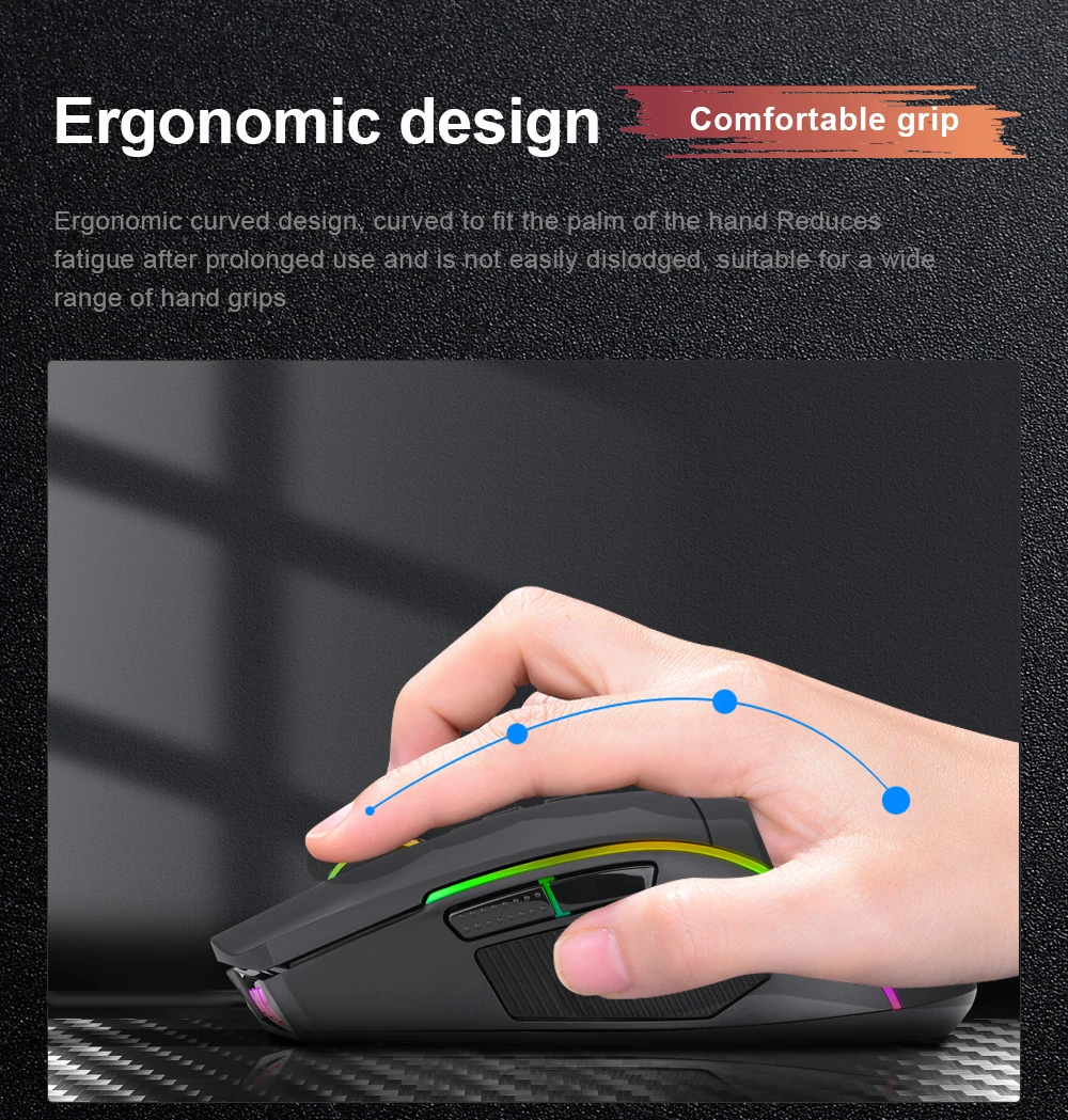 RATÓN PARA JUEGOS PARA PC PROGRAMABLE MMO con retroiluminación RGB; Un total de 8 botones de los cuales 7 botones son programables por el usuario.5 perfiles de memoria cada uno con una opción de color LED distinta para una identificación rápida.El mouse ofrece 16 millones de opciones de color LED RGB, modo Arco Iris, ondas, velocidad y efectos de respiración en 3 niveles de brillo diferentes.(La luz de fondo se puede desactivar) El mouse para juegos Redragon le ofrece una personalización total
