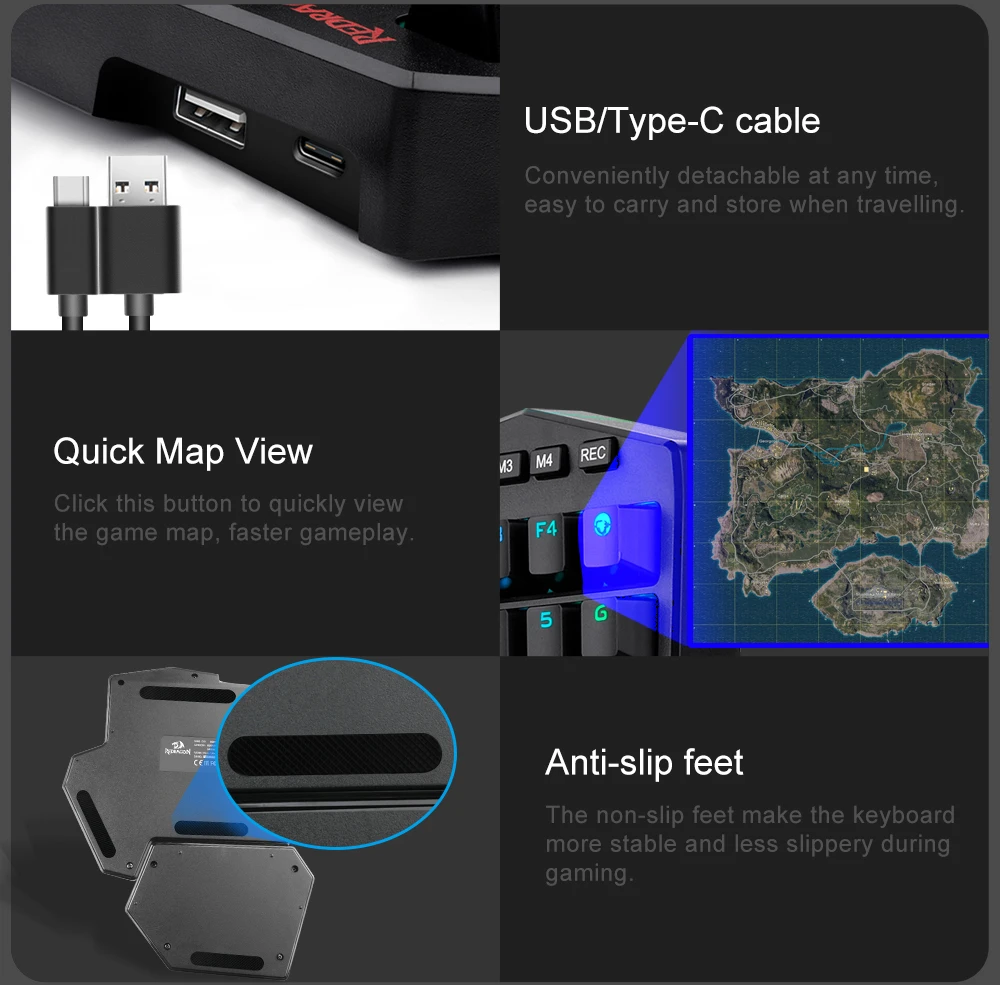 Upgraded Hot-Swap-El socket actualizado ahora está disponible en el teclado Redragon con una sola mano, con más formas de MOD y más diversión. Los icónicos interruptores de Redragon azul entregan Clicky audible con retroalimentación táctil clara, sensación mecánica original.