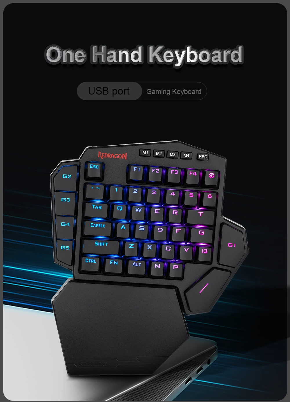 Comprar REDRAGON-Teclado mecánico con cable para juegos DITI K585 RGB, 42 teclas, una mano, USB, interruptor azul, 42 teclas, Gamer para ordenador, PC, portátil