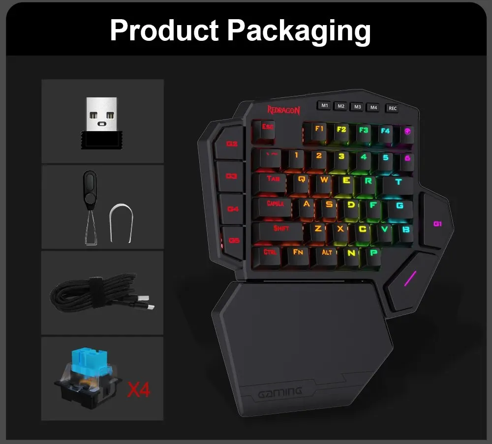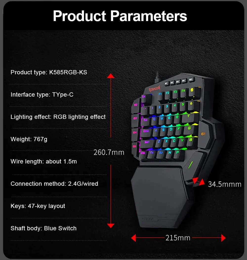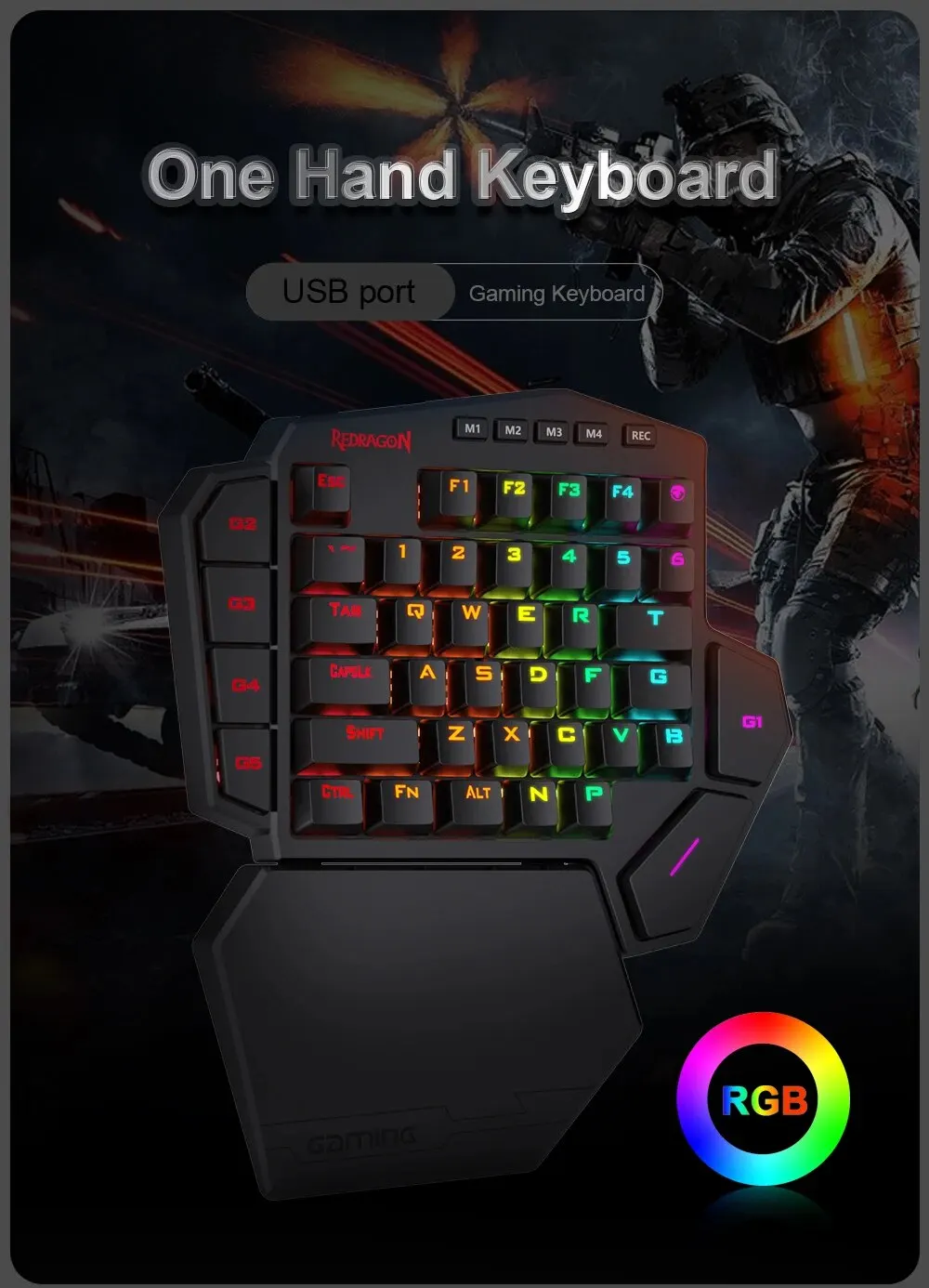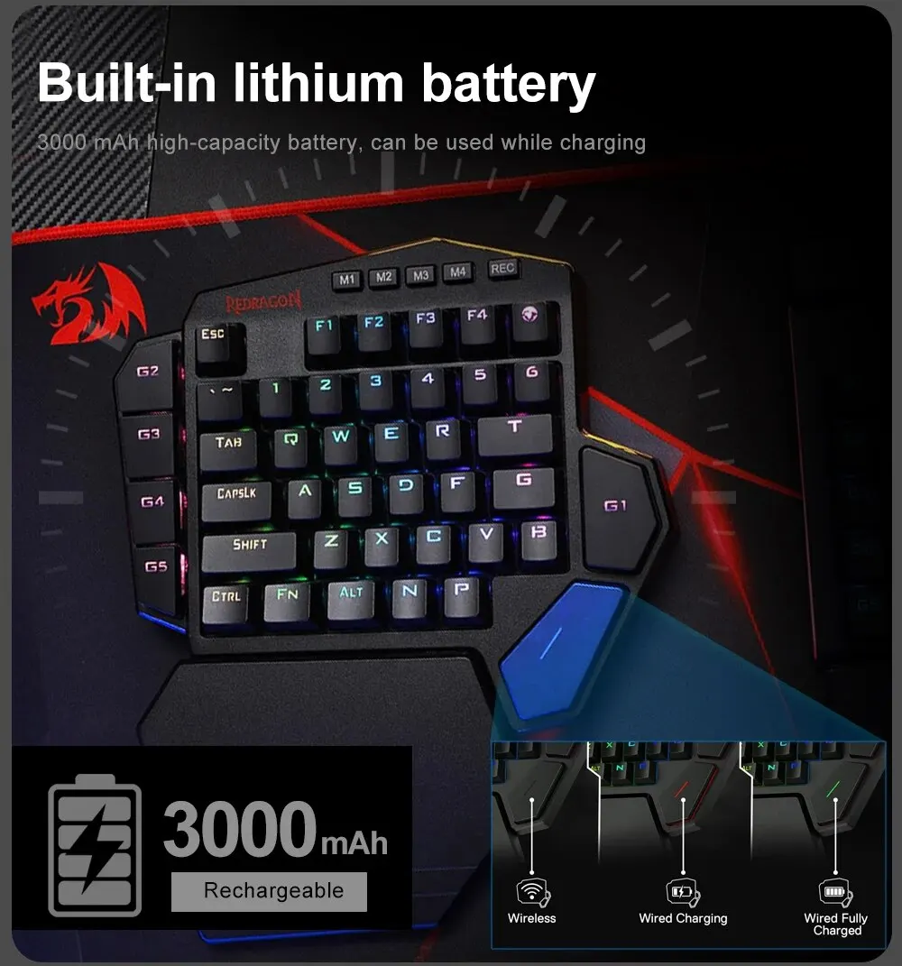 Comprar REDRAGON-Teclado mecánico inalámbrico de una mano para juegos, teclas Macro programables, interruptor azul, RGB, 42 teclas, 2,4 Ghz, DITI ELITE K585