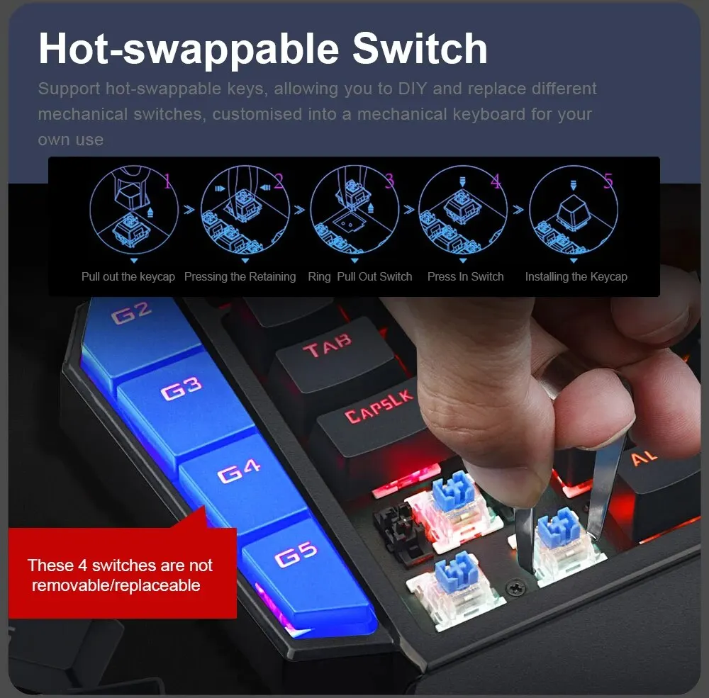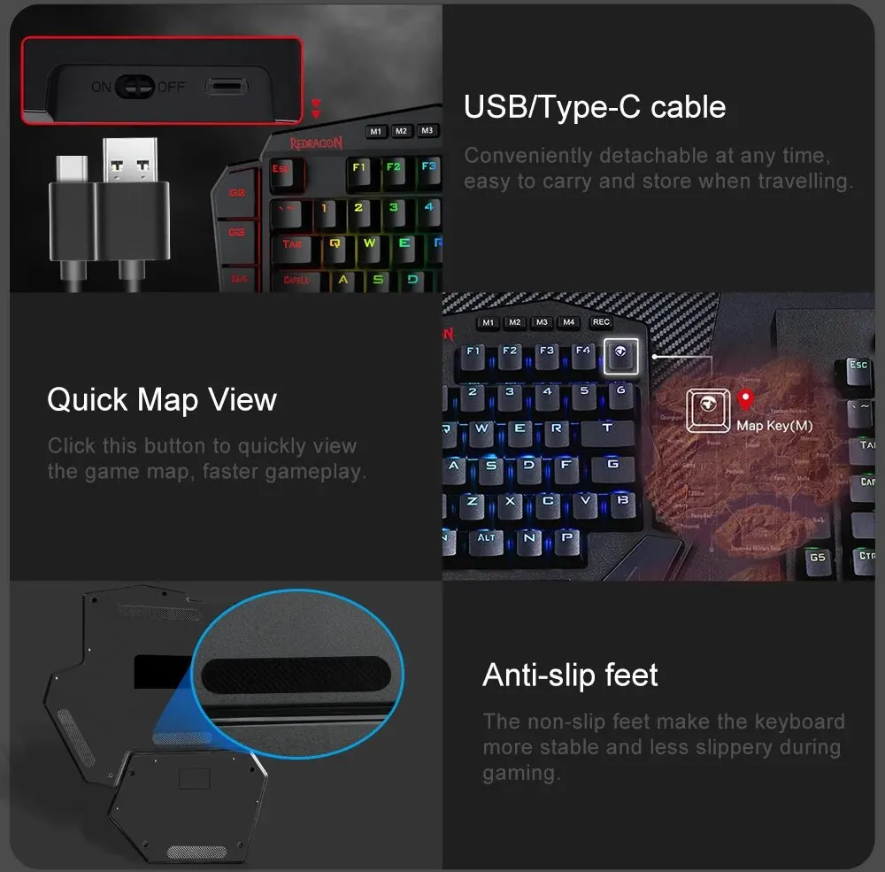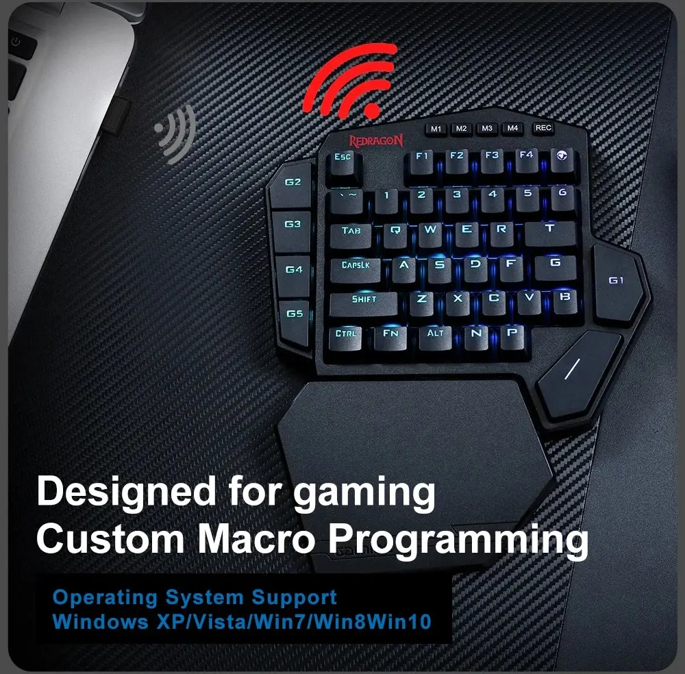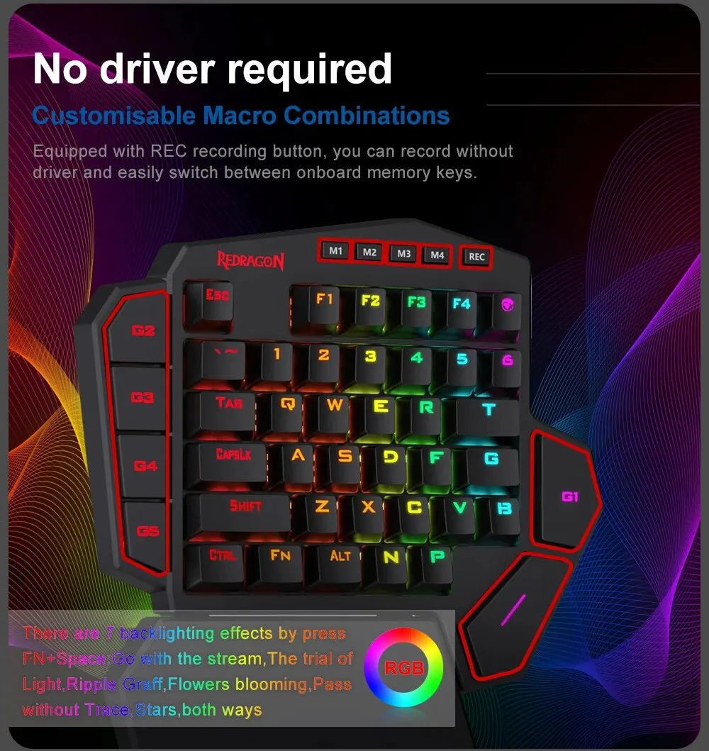 Comprar REDRAGON-Teclado mecánico inalámbrico de una mano para juegos, teclas Macro programables, interruptor azul, RGB, 42 teclas, 2,4 Ghz, DITI ELITE K585