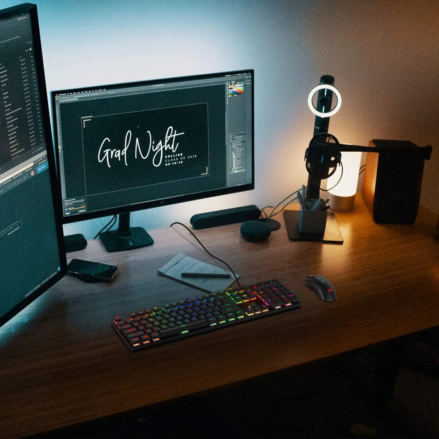 Comprar Redragon-Teclado mecánico para juegos K589 RGB, periférico ultradelgado de 104 teclas, antighosting, accionamiento rápido, sin viaje, para PC