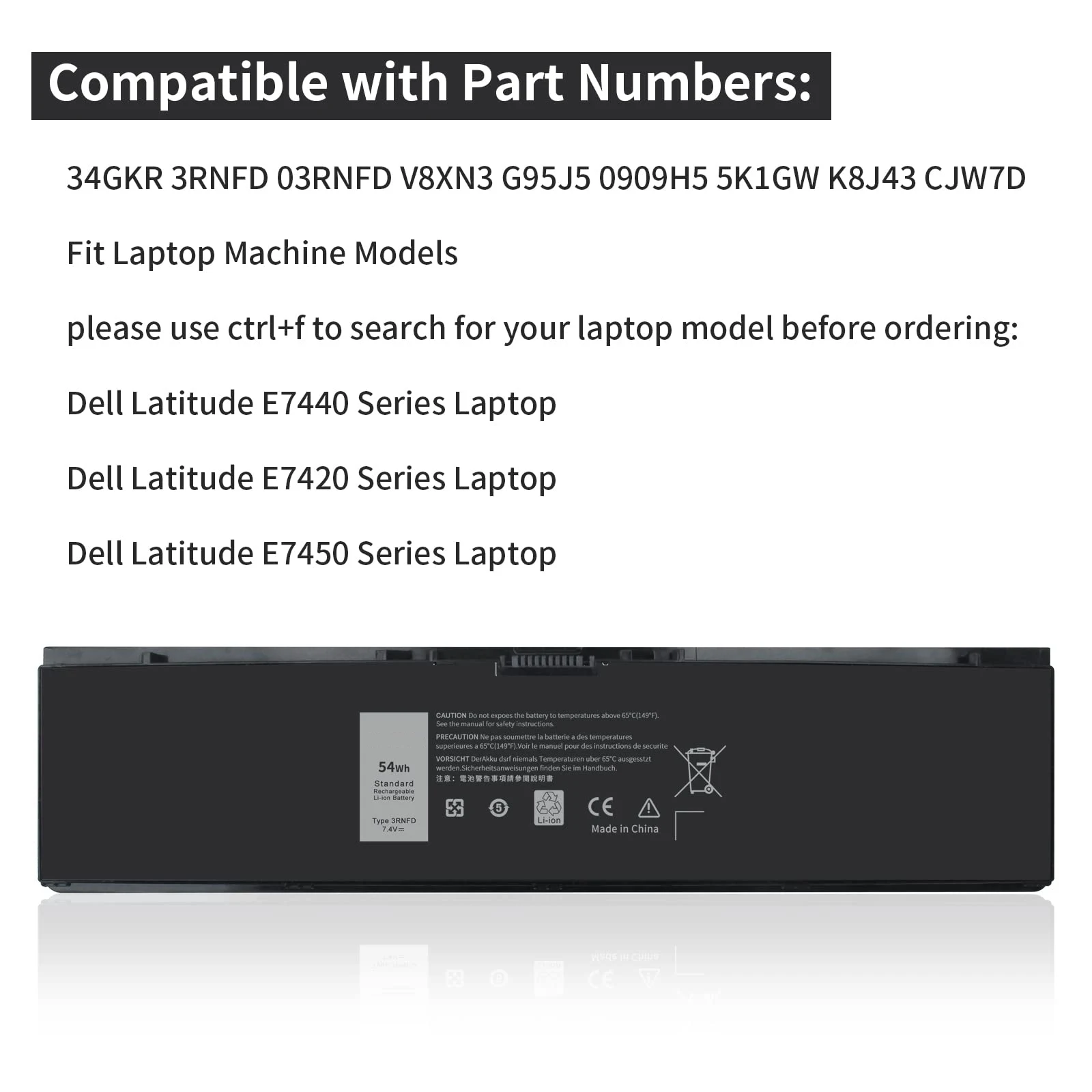 Comprar Reemplazo de batería de alta capacidad 54Wh E7440 3RNFD para portátil Dell Latitude 14 E7450 E7420 Series V8XN3 34GKR 451-BBOG BBFV 7,4 V