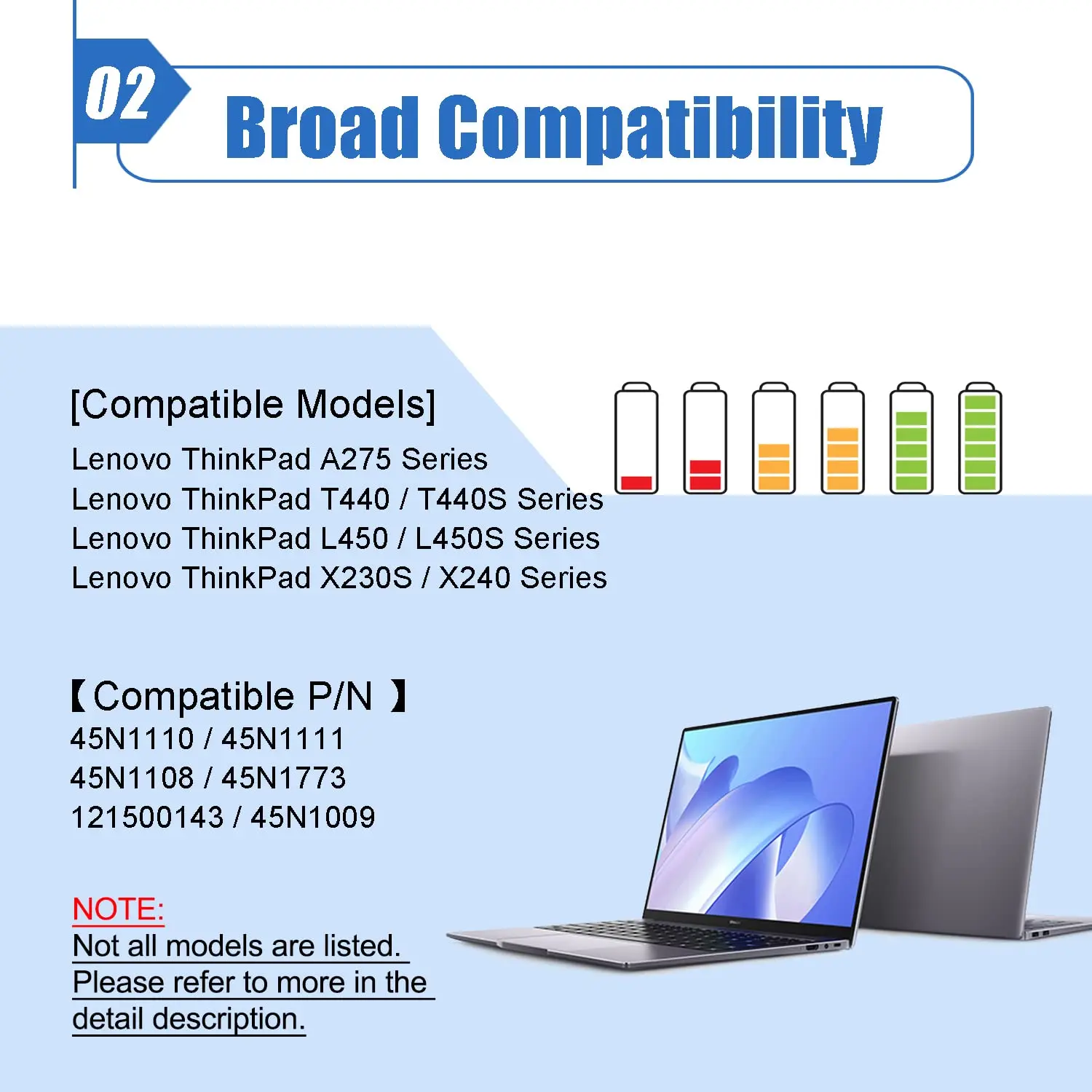 9 .Compatible Models (use "Ctrl+F to find your model quickly")Fit for Lenovo ThinkPad T440 T450 T450S T460 X240 X240S X250 X260 A275 Series