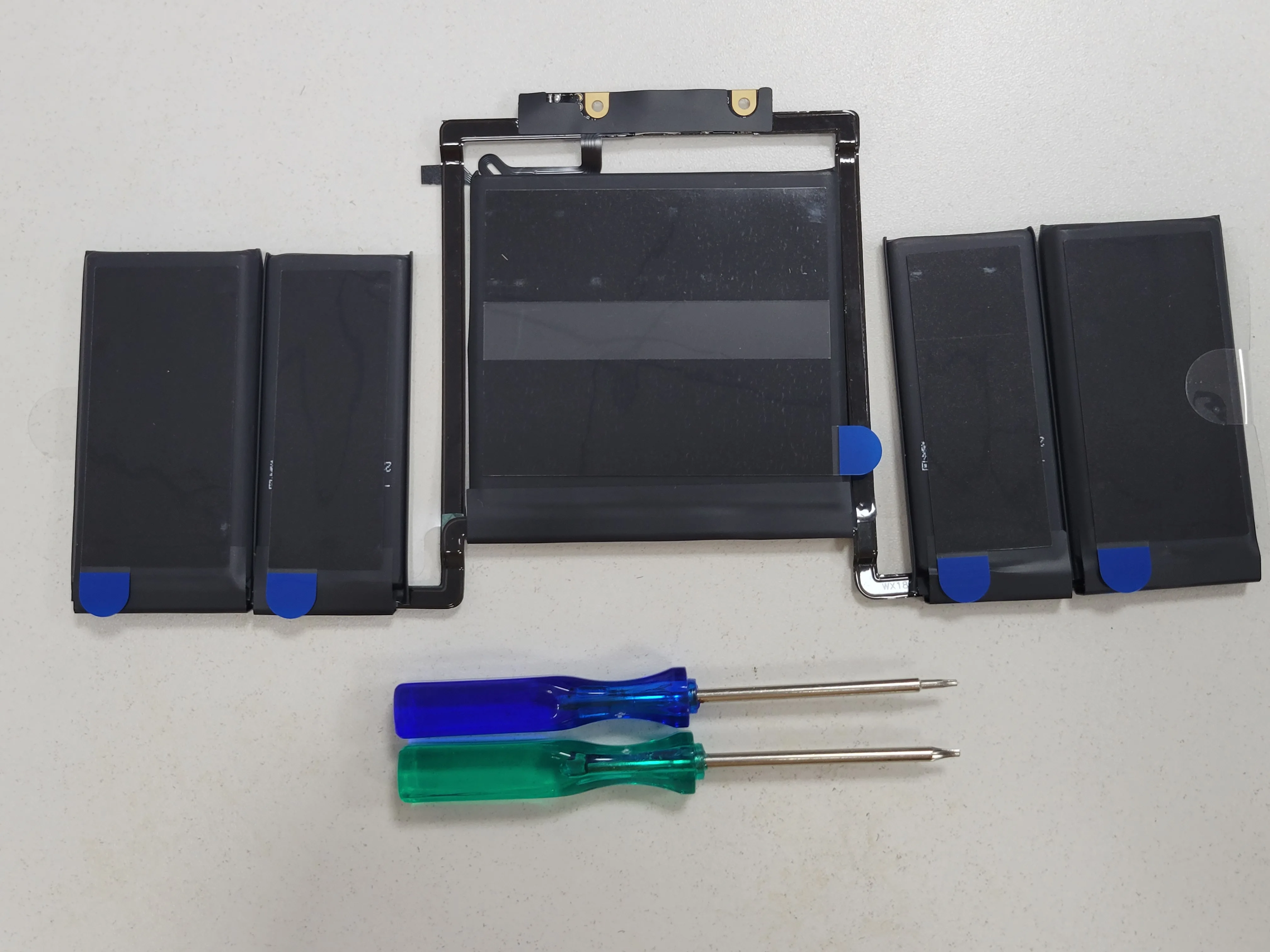 Se incluyeron dos destornilladores, y pensé que serían suficientes, pero no se incluyó un destornillador T4, así que tuve que comprarlo por separado. Sin él, no podría desconectar el conector del panel táctil y quitar la batería. La batería en sí está funcionando bien hasta ahora, así que no creo que haya ningún problema. Estoy escribiendo esta reseña en el MacBook Pro con la batería reemplazada.