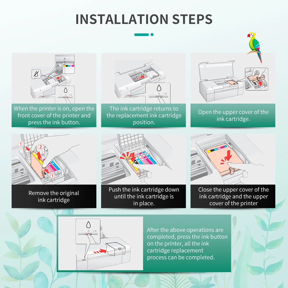 Compatible con el cartucho de tinta Espon: T1811XL BK/C/M/Y/ (utilizado para la versión europea de la impresora)