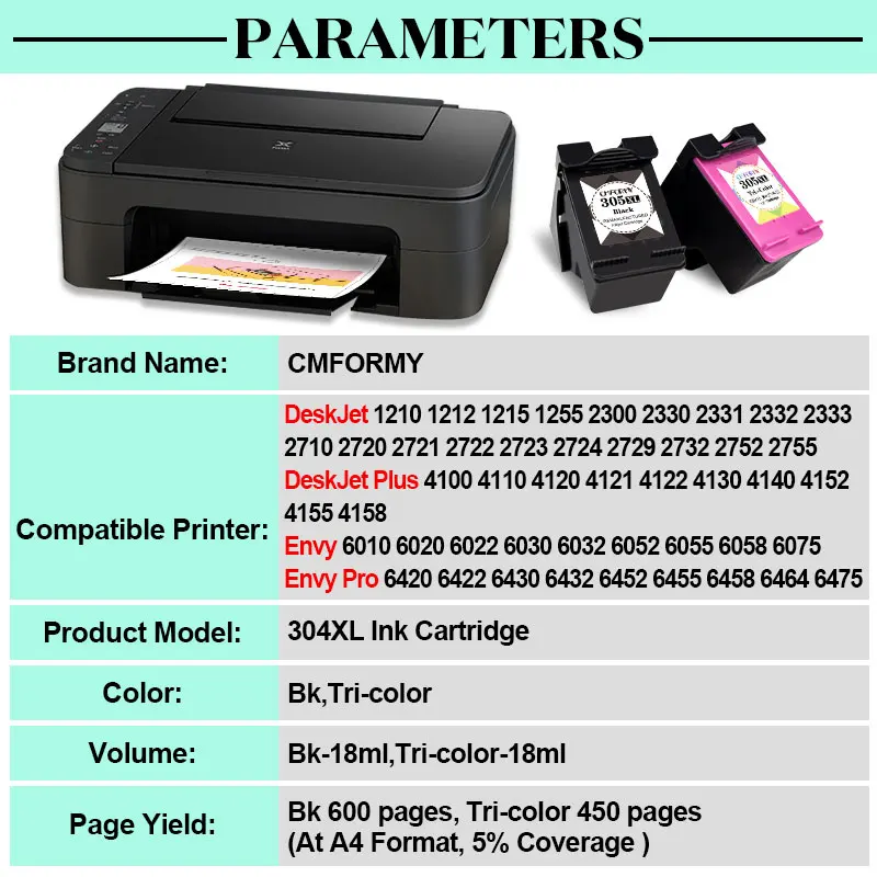 Para HP DeskJet Serie 1210 1212 1215 1255 2300 2330 2331 2332 2333 2710 2720 2721 2722 2723 2724 2729 2732 2752 Para HP DeskJet Plus Serie 4100 4110 4120 4121 4122 4130 4140 4152 4155 4158 Para HP Envy Serie 6010 6020 6022 6030 6032 6052 6055 6058 6075 Para HP Envy Pro Serie 6420 6422 6430 6432 6452 6455, el mismo país tiene diferentes modelos de Simplemente compre el cartucho de tinta con el mismo número que el original.