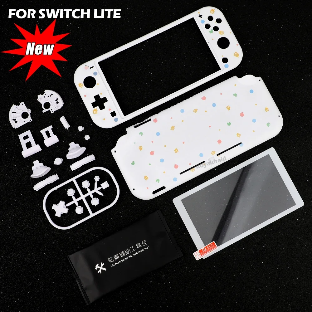 Reemplazo DIY para consola de juegos NS Switch Lite, carcasa trasera + placa frontal + botones de carcasa + pantalla de vidrio templadoCaracterísticas:Material: ABS + PC Modelo aplicable: Para Switch Lite Producto de envío: Carcasa + Botones + Película templada + Herramientas- Kit de repuesto completo: Incluye cubiertas frontal y trasera, botones, protector de pantalla de vidrio templado y un conjunto de herramientas esenciales para una fácil instalación de bricolaje.