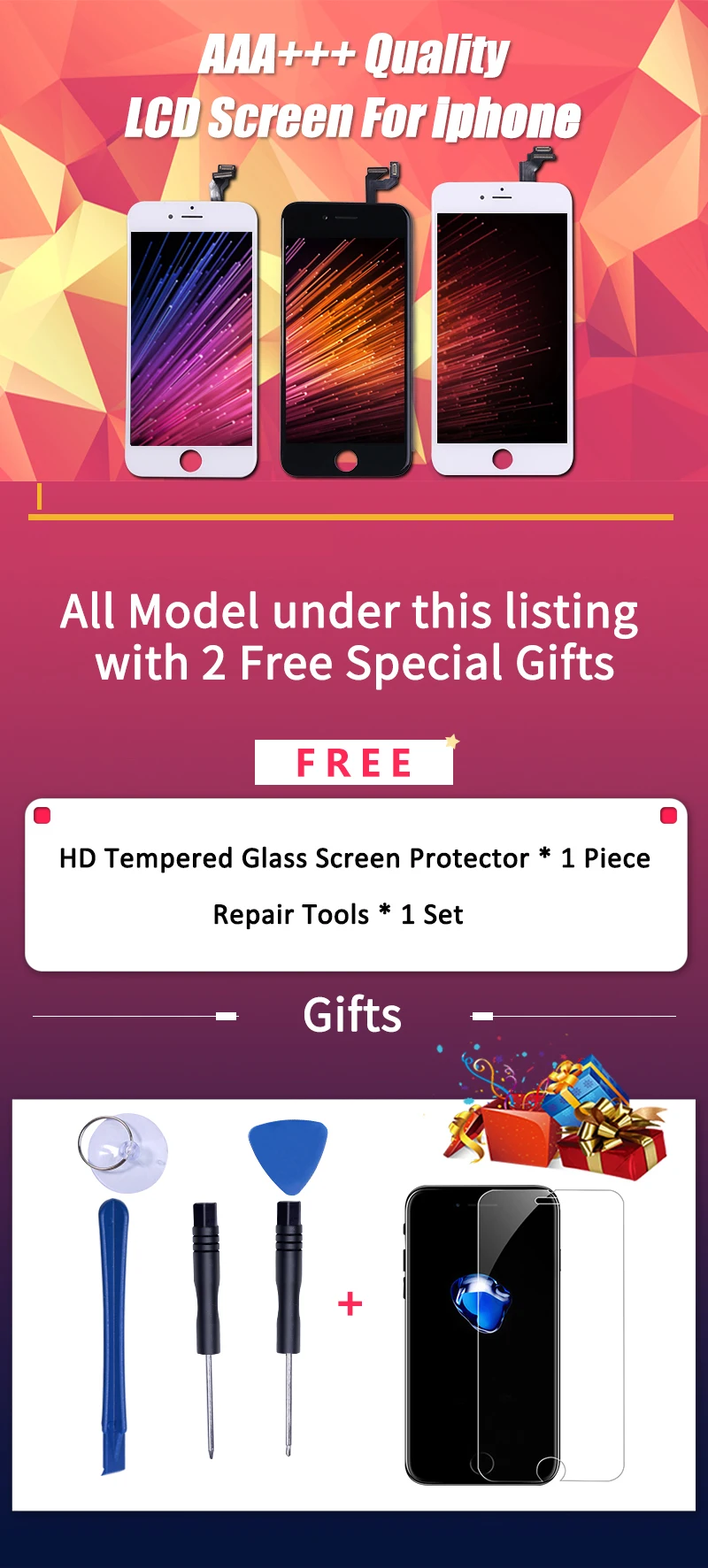 Reemplazo de pantalla LCD de fábrica para iPhone MONTAJE DE digitalizador de pantalla táctil para iPhone 5 6 6plus 7 + vidrio templado + herramientas + estuche