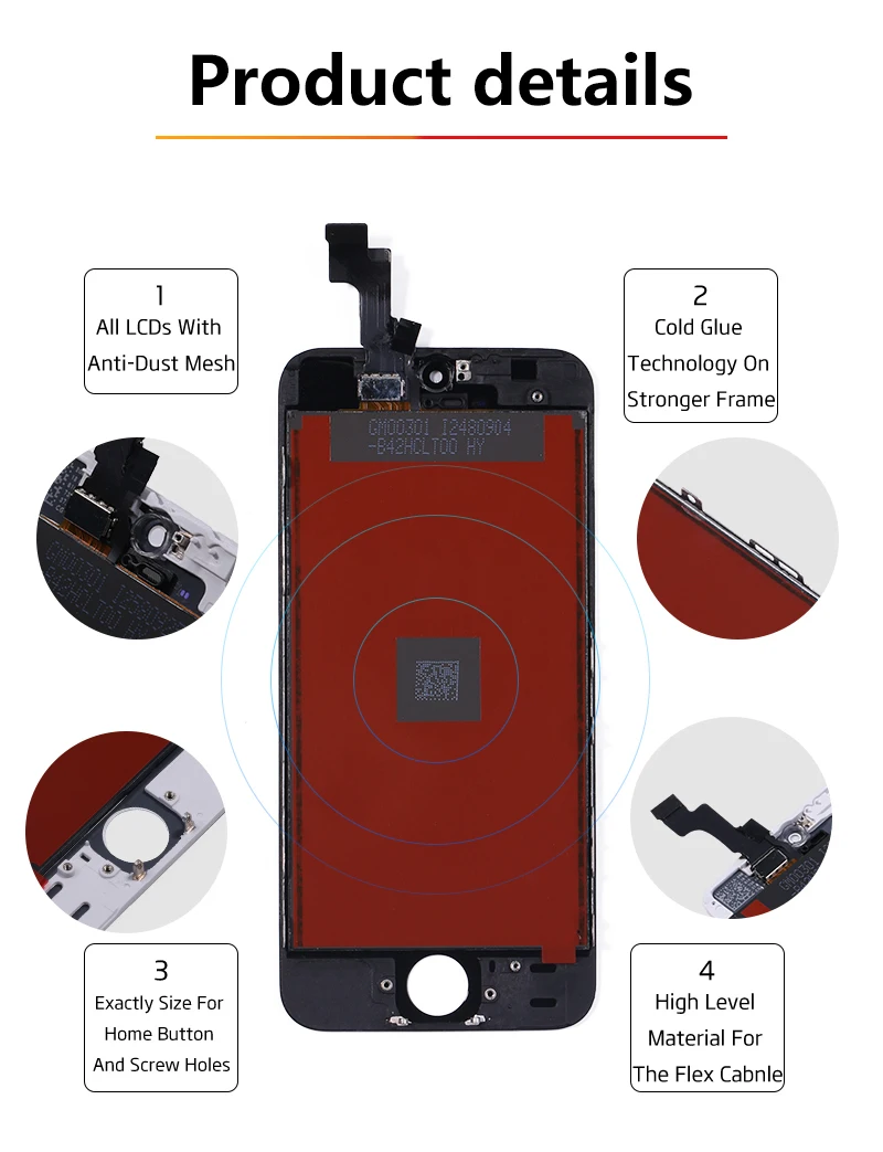 Comprar Reemplazo de pantalla LCD de fábrica para iPhone 5s, montaje de digitalizador de pantalla táctil para iPhone 5, 6, 6plus, 7 + vidrio templado + herramientas + funda