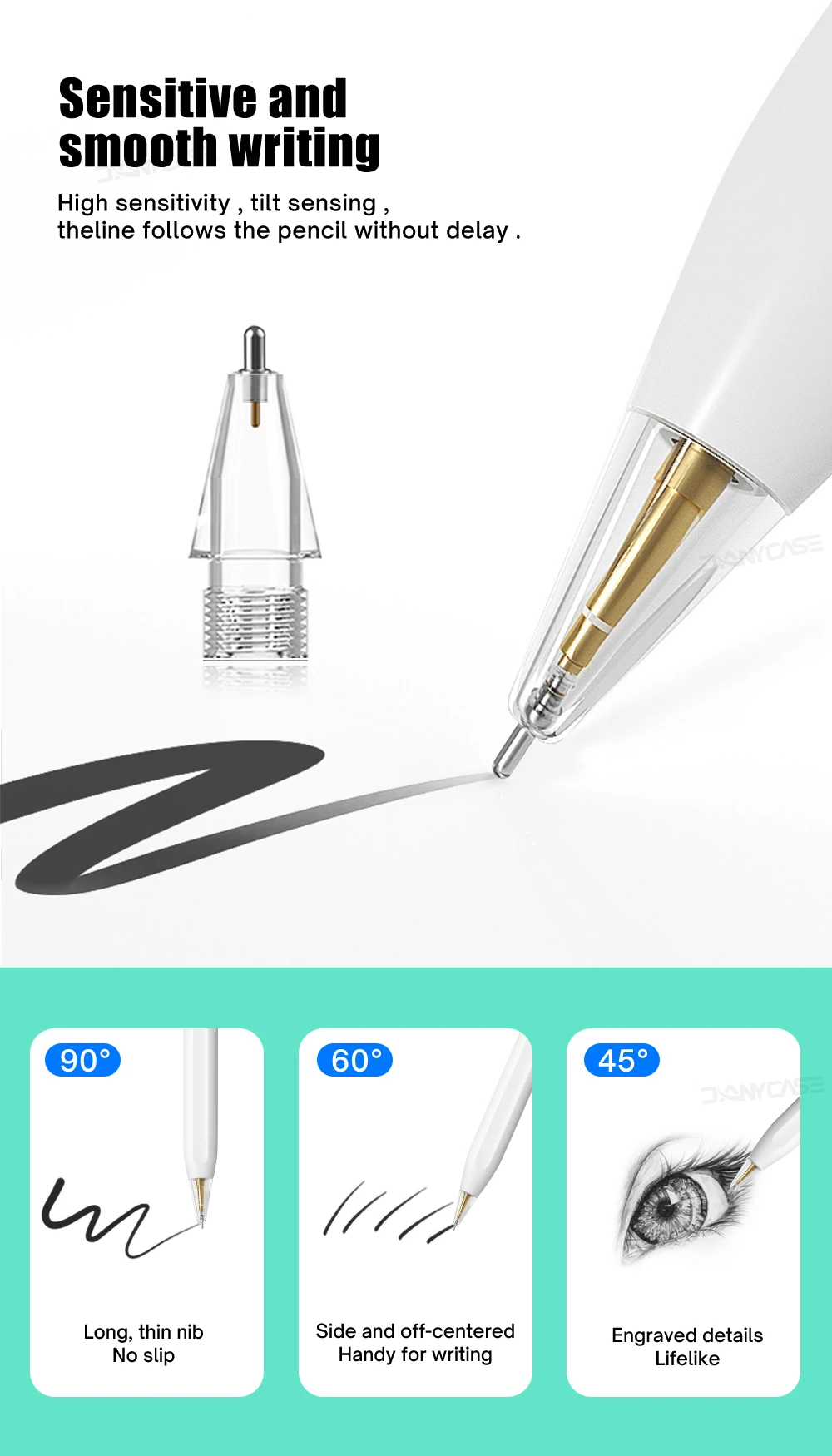 Alta precisión y sin retraso prácticamente: puede usarlo para dibujar fácilmente líneas perfectas, presione con fuerza para obtener líneas gruesas, presione ligeramente para obtener líneas delgadas, cree sombreado simplemente inclinando su lápiz Apple
