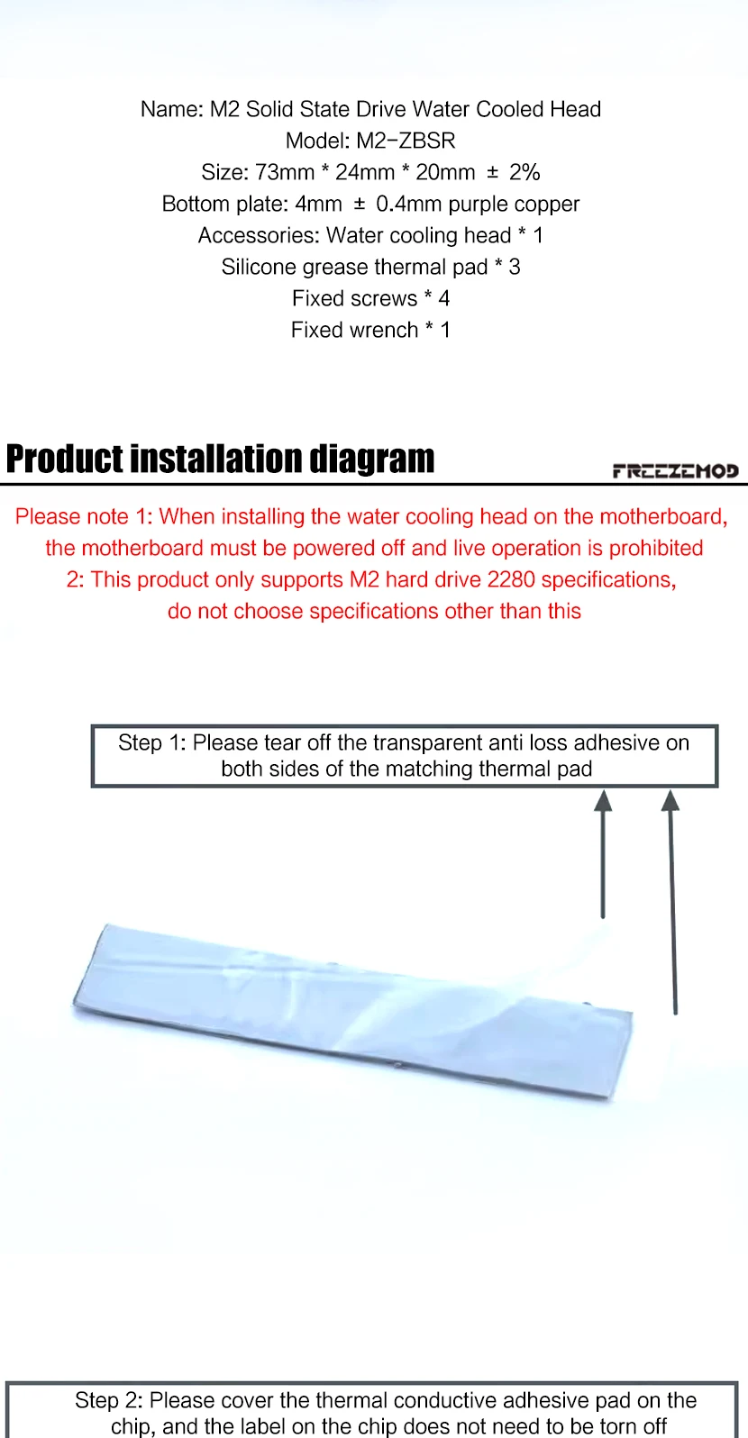 Nombre: Bloque de refrigeración por agua del disco duro de estado sólido M2