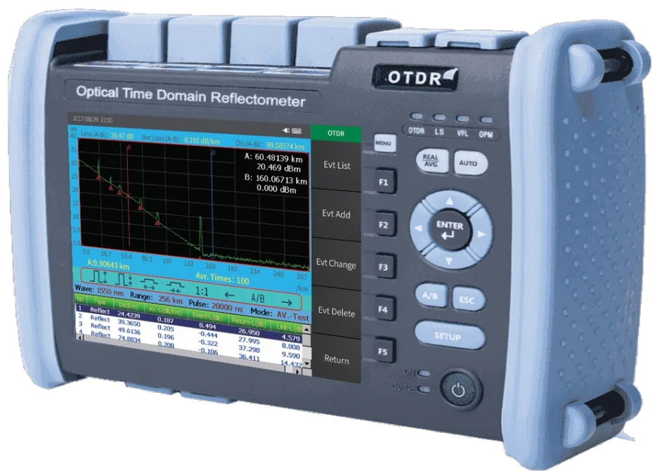Diseño de mano OTDR FF-990PRO, compacto y ligero, fácil de llevar. Información de eventos a través de la pantalla TFT a color y las capacidades de almacenamiento de datos. A través de la interfaz USB, los datos de prueba se pueden cargar al PC, para facilitar el posprocesamiento, el archivo y la impresión.