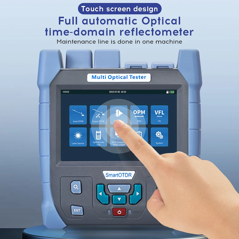 Reflectómetro de dominio de tiempo óptico, VFL/OPM/OLS/MAPA DE EVENTOS/Rj45, prueba de Cable, pantalla táctil, probador de fibra óptica OTDR multifuncional