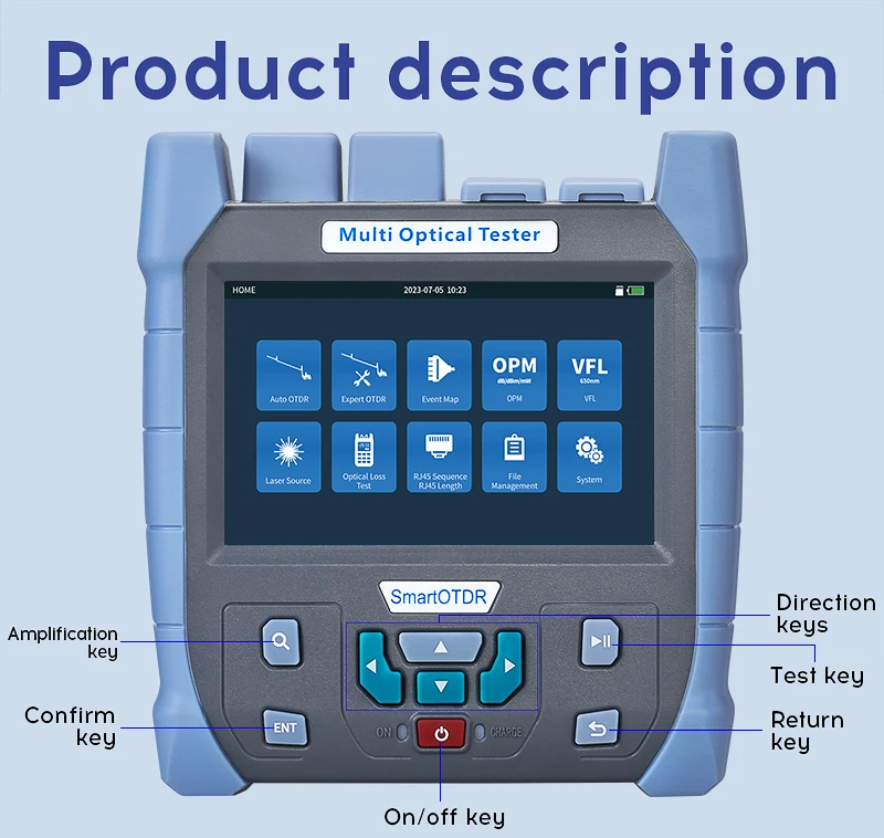Comprar Reflectómetro de dominio de tiempo óptico, VFL/OPM/OLS/MAPA DE EVENTOS/Rj45, prueba de Cable, pantalla táctil, probador de fibra óptica OTDR multifuncional