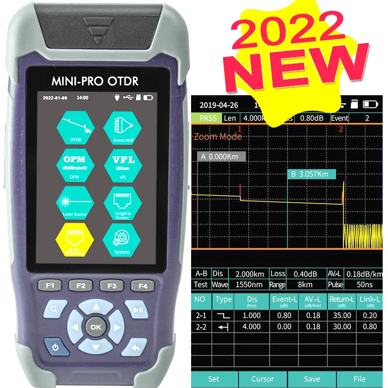 Comprar Reflectómetro de fibra óptica Mini OTDR, 9 funciones, VFL, OLS, OPM, mapa de eventos, 64km, verificación de cobre, nuevo, FF-980REV Pro, 2023