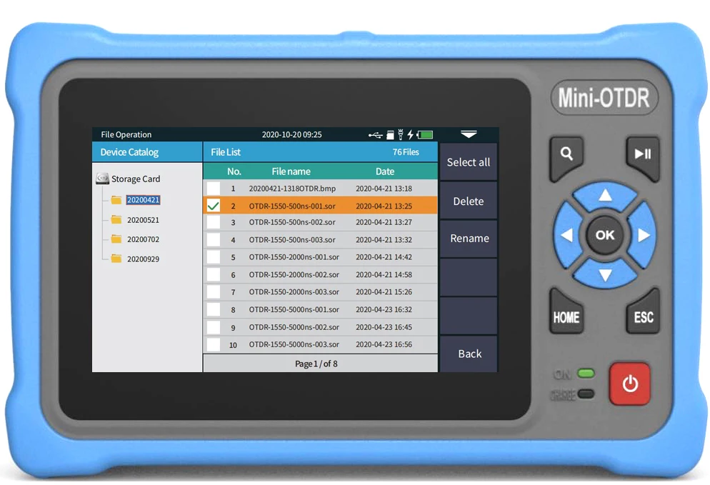 La serie 980MAS es práctica, ligera y lo suficientemente resistente para cualquier entorno vegetal exterior. Con 4,3 pulgadas, Pantalla táctil mejorada para exteriores, la pantalla portátil más eficiente de la industria, ofrece una pantalla sin precedentes. Experiencia del usuario. Su intuitiva y concisa GUI garantiza una curva de aprendizaje rápida. Además, su entorno nuevo y mejorado Ofrece funciones basadas en iconos, arranque instantáneo, así como modos automáticos y en tiempo real mejorados. La serie 980MAS es una línea de OTDRs genuinos de alto rendimiento del fabricante líder mundial. Es Ofrece la calidad y precisión de OTDR probada y verdadera de FirstFiber junto con el mejor rendimiento óptico para right-first time Resultados, cada vez. La increíble duración de la batería de 8 horas nunca defraudará al técnico, y las opciones de hardware plug and play como la fibra. La sonda de inspección y las herramientas USB facilitan el trabajo de cada técnico. Lo más importante es que la serie 980MAS finalmente trae el mapa del evento, una aplicación inteligente basada en OTDR, para. El mercado de portátiles. Este software avanzado convierte incluso el análisis de rastro más complejo en un simple y un solo toque Tarea.