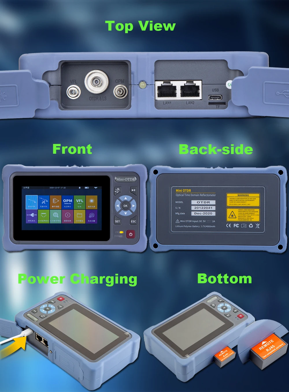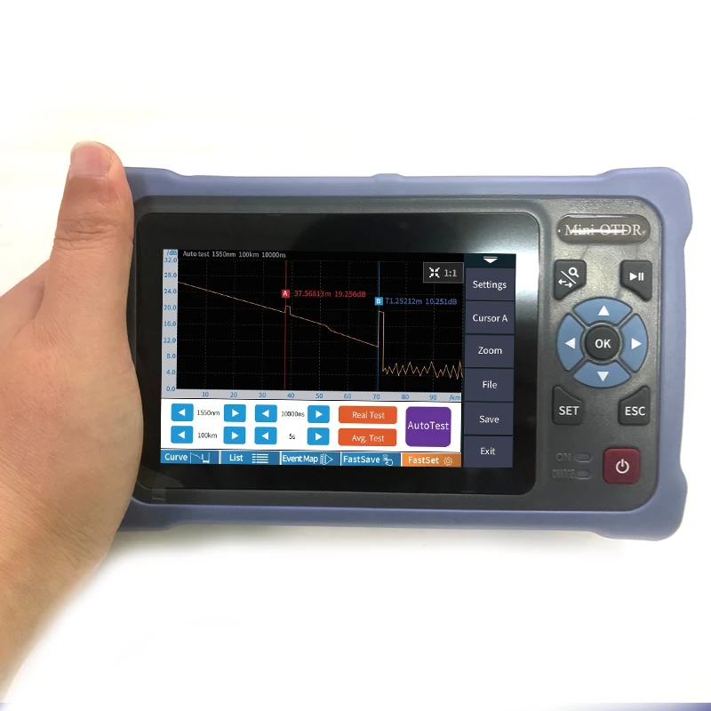 1) OTDR útil y ligero 2) combina todas las pruebas de fibra esenciales en un solo portátil con OPM, OLS, VFL, etc. 3) análisis OTDR fácil de entender con lista de eventos 4) verificación o solución de problemas de red PON 5) se actualiza fácilmente en el campo 6) Duración de la batería durante todo el día Podemos proporcionar servicio técnico en OTDR, y estamos buscando distribuidores para nuestro OTDR. Si tiene experiencia en ventas de equipos de fibra, contáctenos.