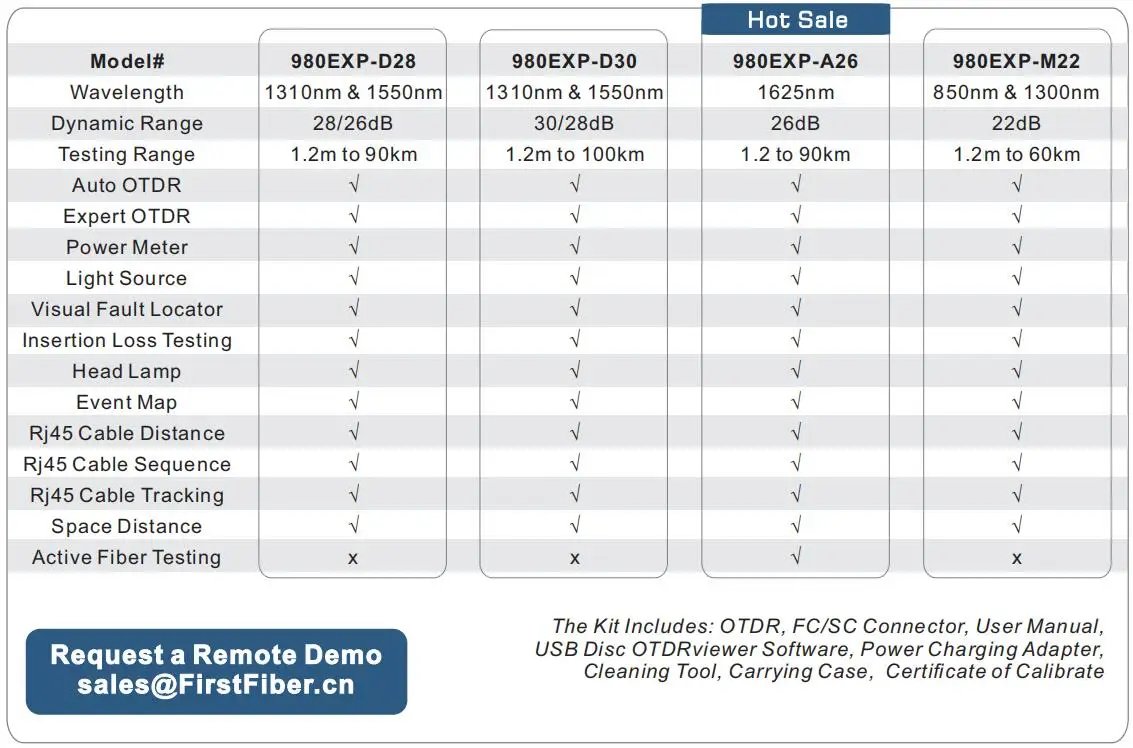 Nota: El OTDR (1625nm, 980EXP-A26) funciona para la red FTTH PON (tanto GPON como EPON), ya que está integrado con filtro de longitud de onda en 1625nm.