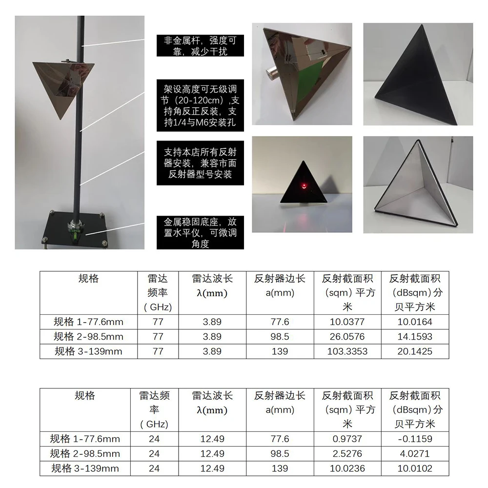 Reflector de esquina de Radar, herramienta de calibración Acc de onda milimétrica de microondas, Reflector de Radar de coche y barco, Reflector de ángulo de calibración