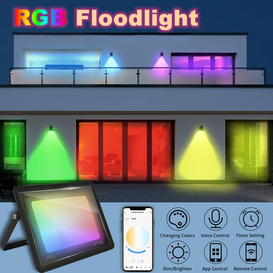 TUYA Reflector RGB Aplicación inteligente Control de voz RGB CW 3000-6500K 30W 50W 100W 220V AC para fiesta en el jardín Foco de iluminación al aire libre