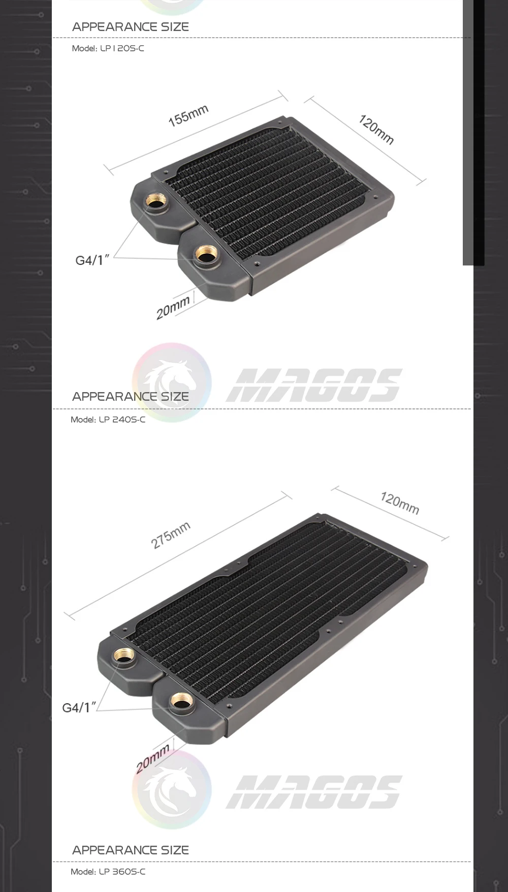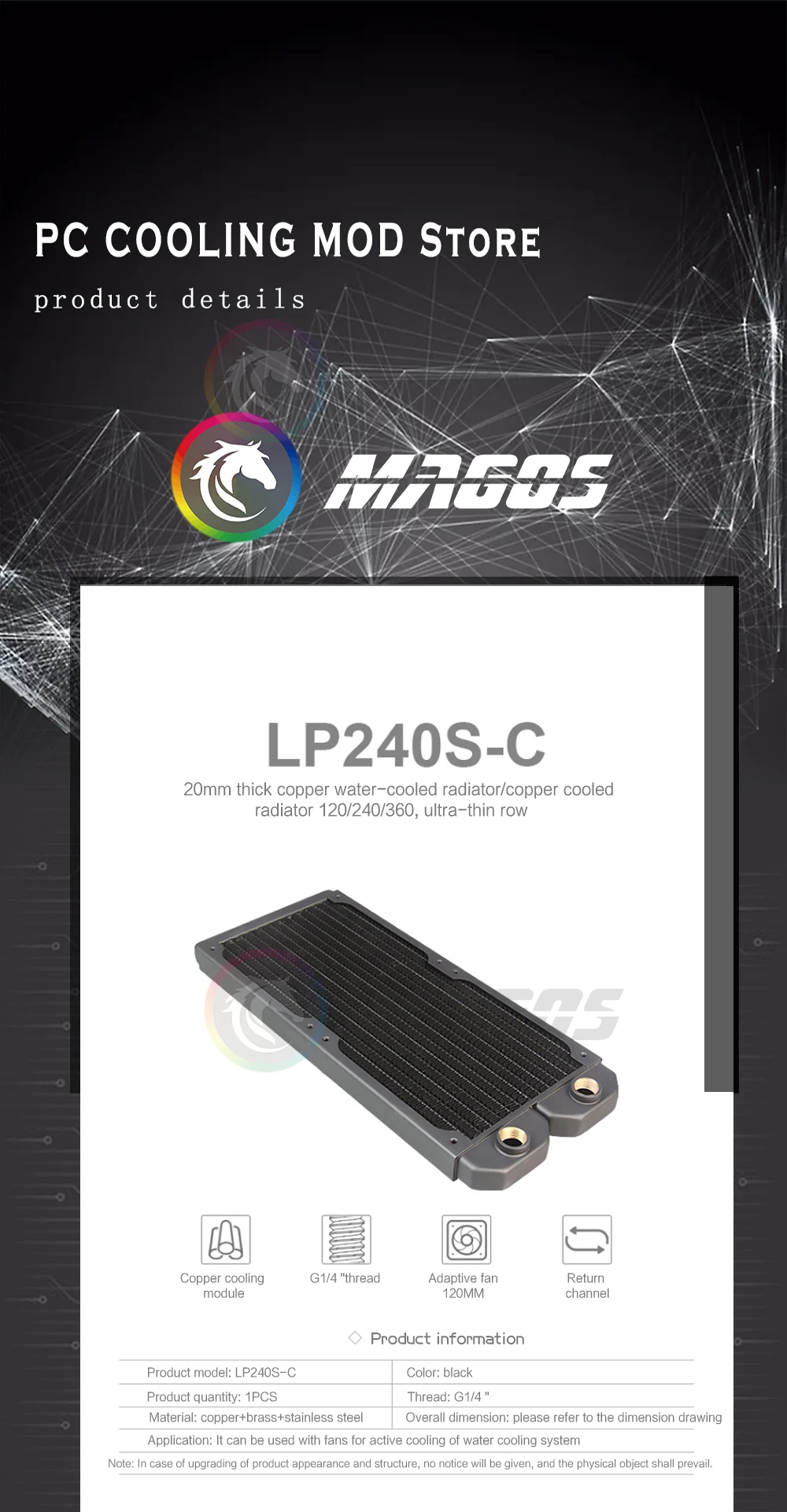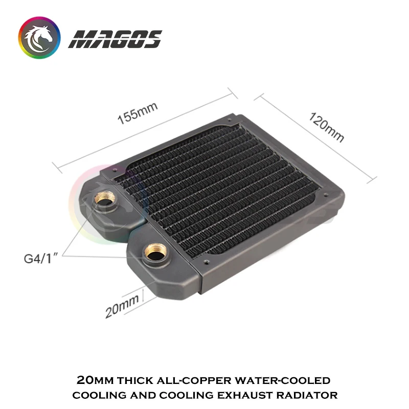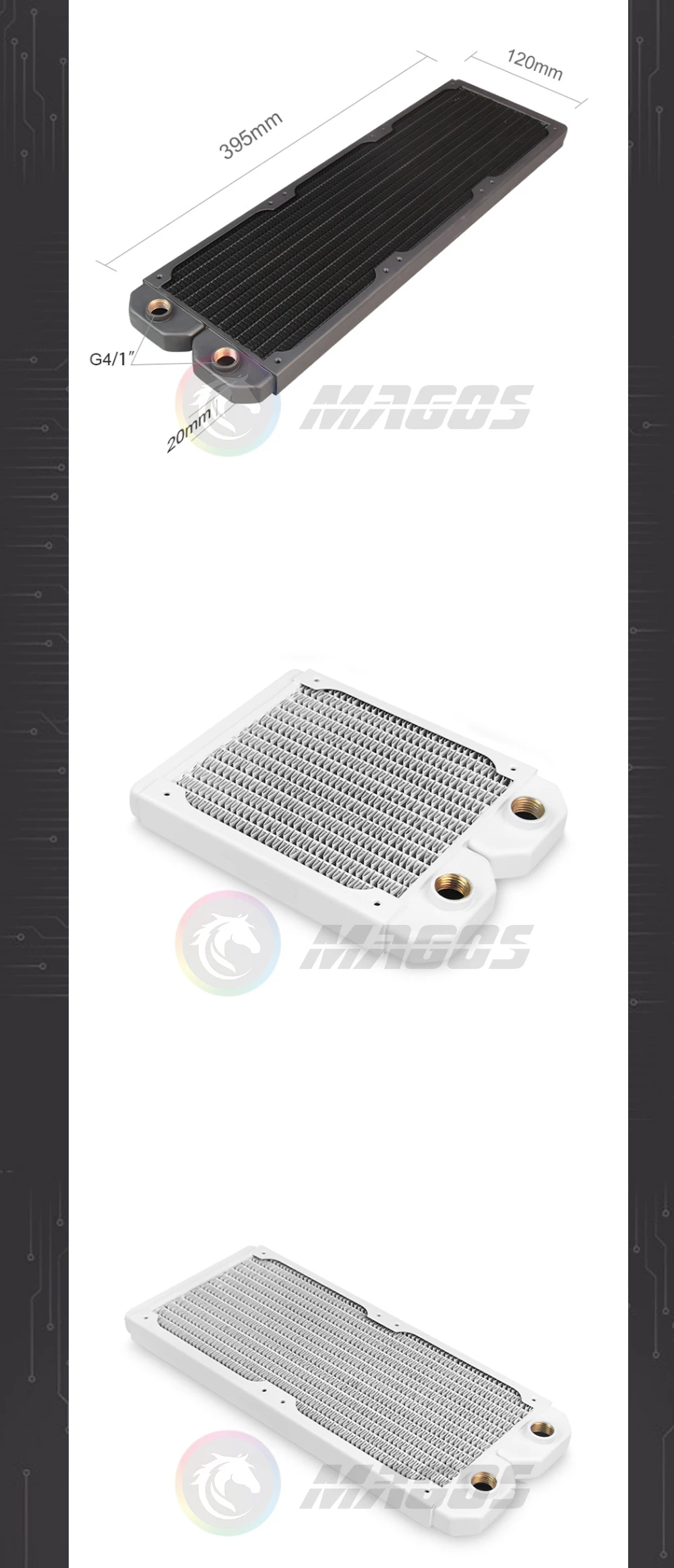 Refrigeración por agua para PC, radiador de cobre fino de 20mm, G1/4 ", disipador térmico de cobre, enfriador para ventilador de refrigeración de 120mm, 120/240/360/480mm, negro/blanco