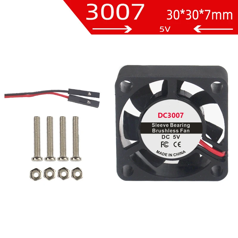 2 pines 5v DC3007 30mm 7mm espesor enfriador con tornillos para raspberry Pi3B4B soporte de manga silenciosa