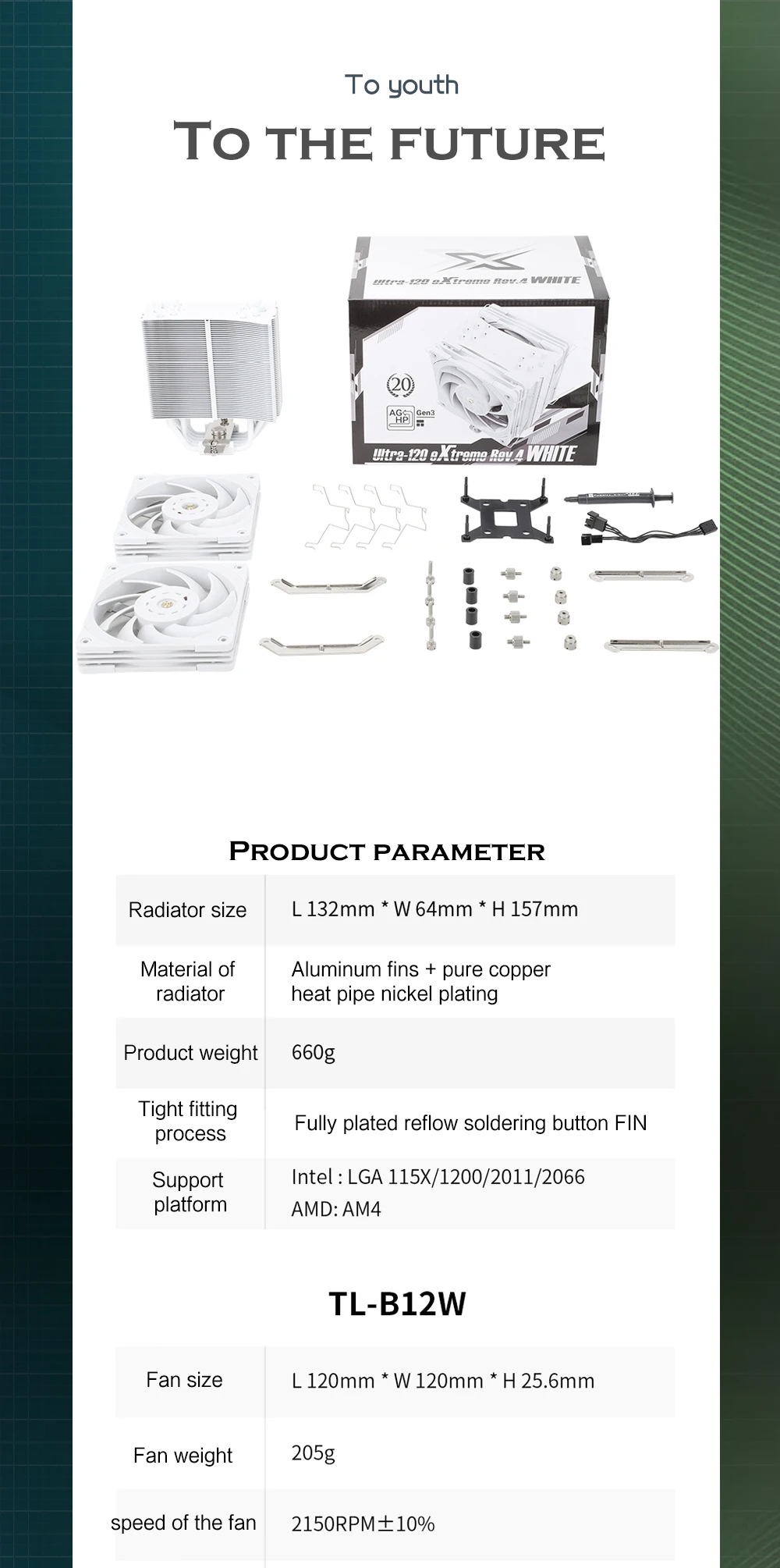 Refrigerador de CPU Thermalright U120EX, 6 tubos de cobre con ventilador PWM de 4 pines de 120mm para radiador de torre de ordenador Intel 1700 115x2011 2066 AM4