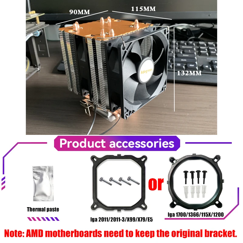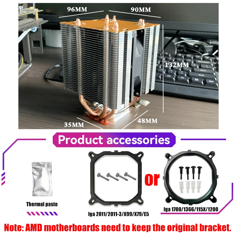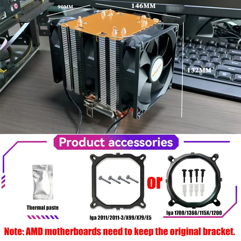 --Para AMD:AM5/AM4/AM2 /AM2/AM3/FM1/FM2 (para AMD debe mantener el soporte original en su placa base y simplemente abrochar el enfriador estará bien)