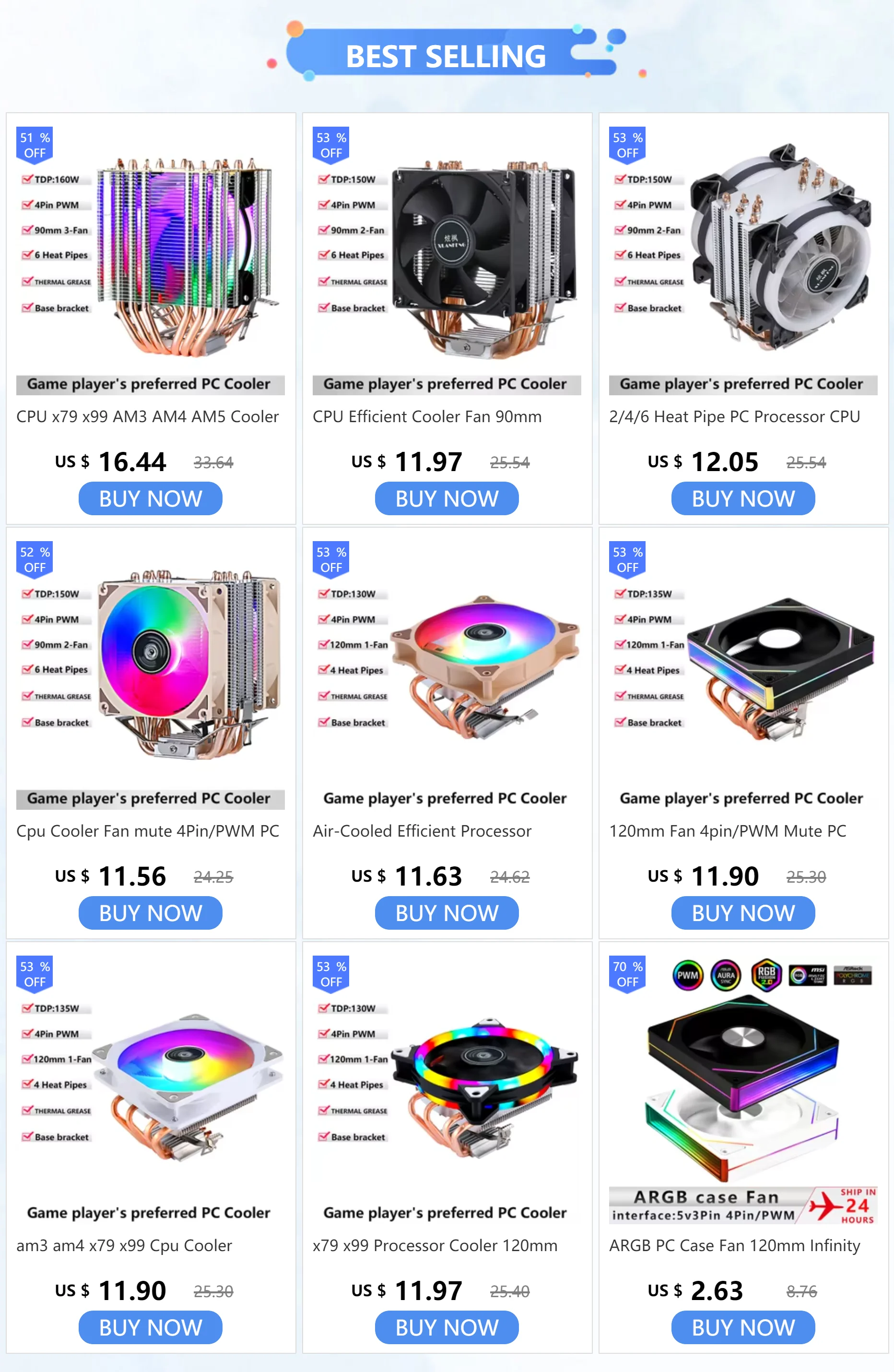 Comprar Refrigerador de procesador x79 x99, ventilador de 120mm, radiador Horizontal de 4 pines/PWM para PC, tubo de calor 2/4, instalación refrigerada por aire LGA2011 1200 115X AM3 AM4 i5