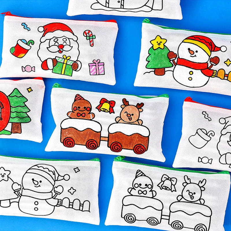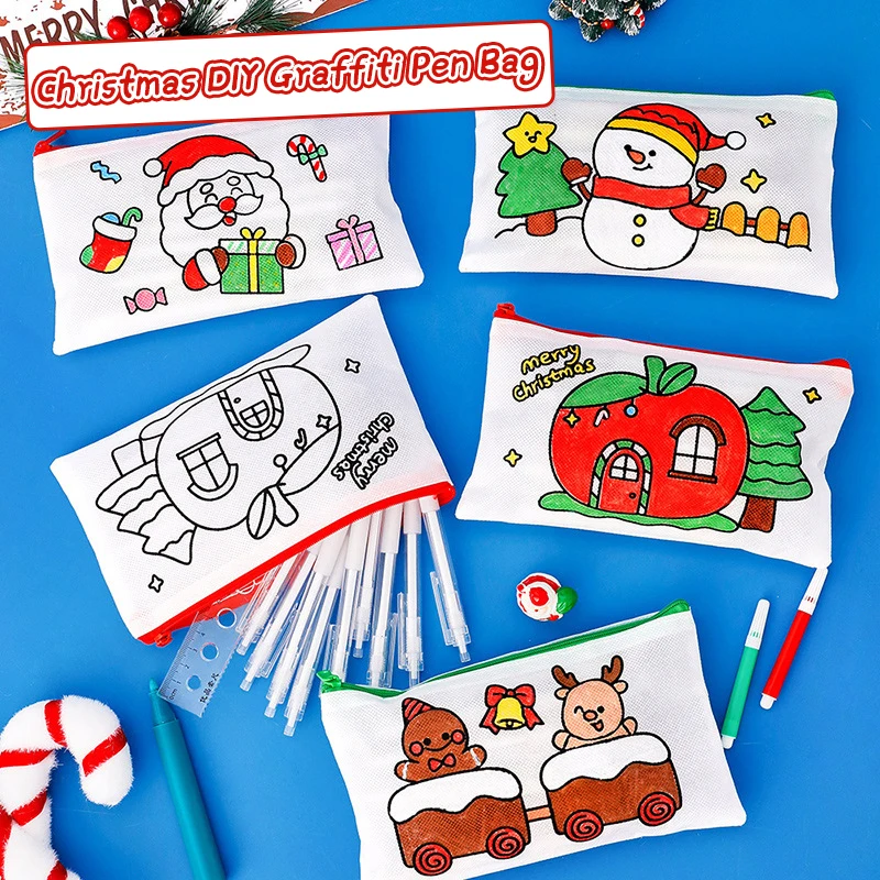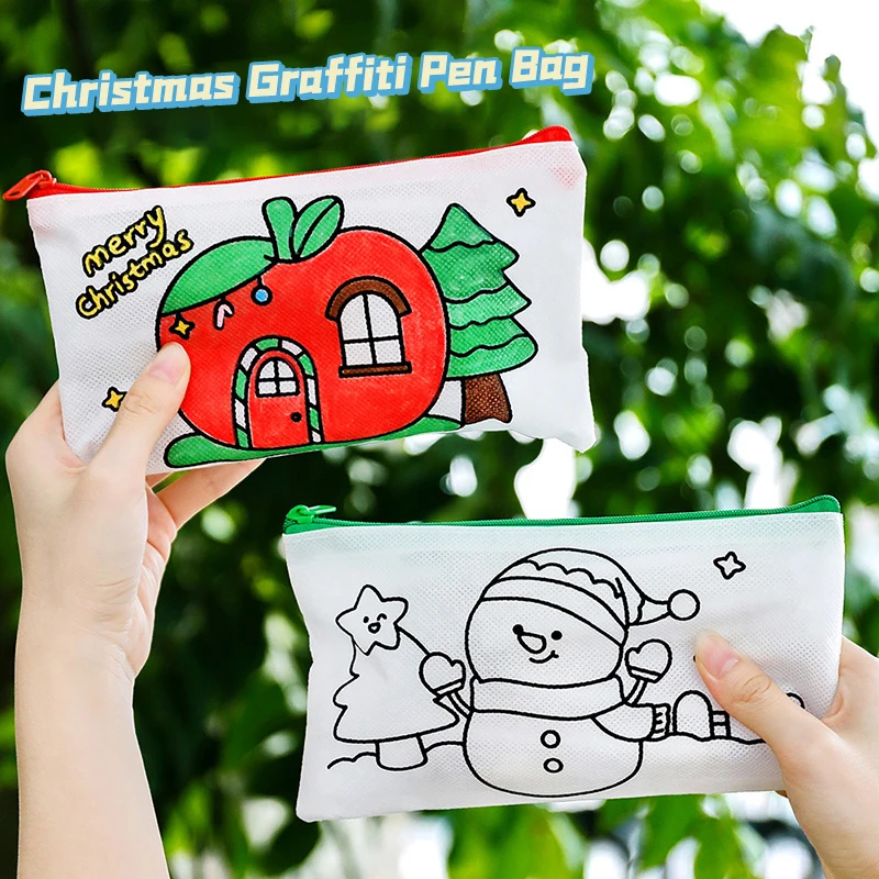 Comprar Regalo de Navidad, bonitos y creativos estuches de lápices con grafiti de Navidad, estuche de lápices de dibujos animados, bolsas de bolígrafos Kawaii de moda, papelería para estudiantes
