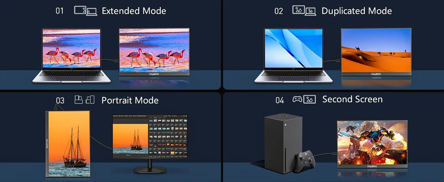 [Multiple Display Mode]: This portable computer monitor supports duplicate, extended, second screen, and vertical display mode, bringing high efficiency to your meetings, work from home, and travel. Having a second monitor for laptop significantly enhances your multitasking abilities, allowing you to handle multiple tasks with ease!