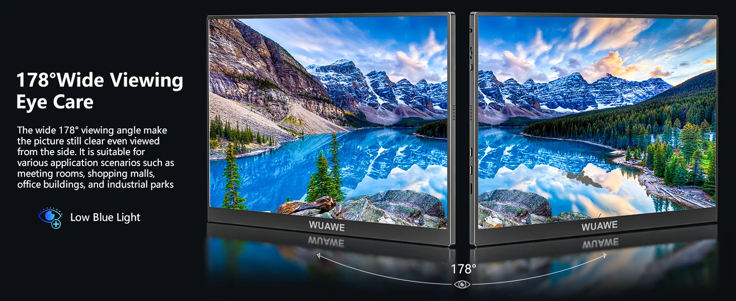[1200P 16'' Portable Laptop Monitor]: The 16" portable monitor with 1920x1200P, featuring 300cd/m² brightness, a 1200:1 contrast ratio, HDR, Freesync, and low blue light, making your gaming and work experience truly immersive. It is suitable for various application scenarios such as meeting rooms, shopping malls, office buildings, cafes, universities, and industrial parks