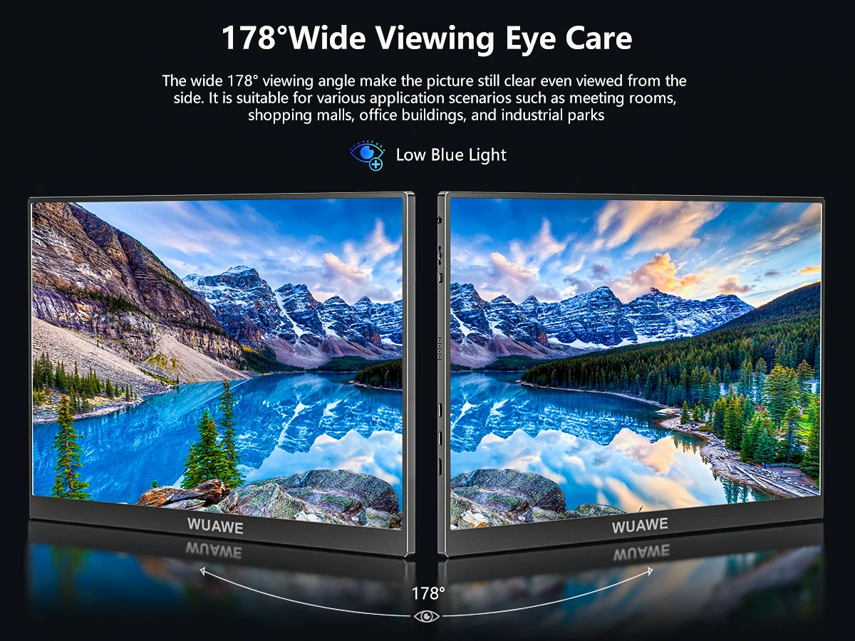 [1200P 16'' Portable Laptop Monitor]: The 16" portable monitor with 1920x1200P, featuring 300cd/m² brightness, a 1200:1 contrast ratio, HDR, Freesync, and low blue light, making your gaming and work experience truly immersive. It is suitable for various application scenarios such as meeting rooms, shopping malls, office buildings, cafes, universities, and industrial parks