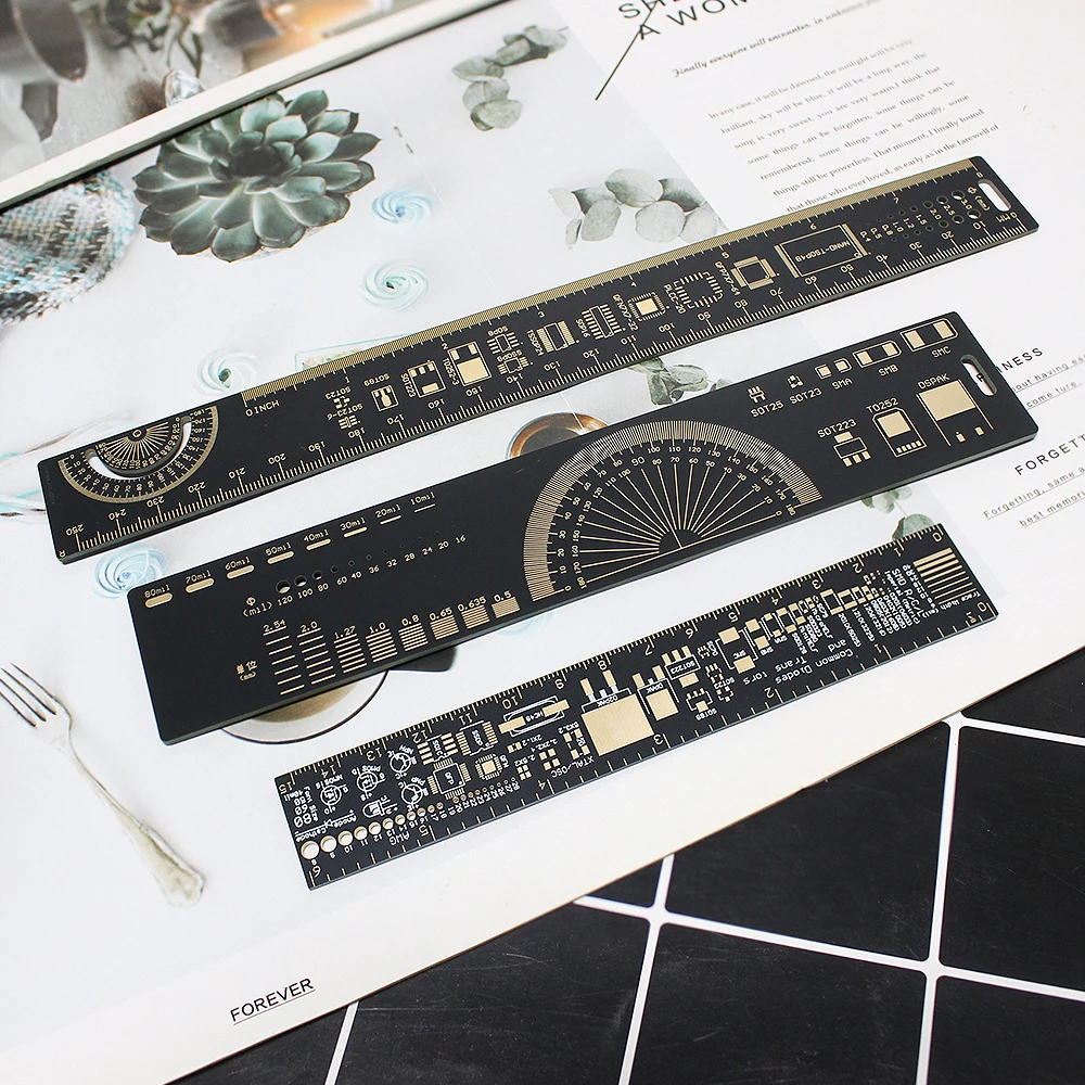 PCB se refiere a una placa de circuito impreso, que es el soporte de componentes electrónicos.Los entusiastas de la electrónica necesitan urgentemente una herramienta de medición en el proceso de diseño para reunir las funciones necesarias y utilizadas comúnmente.La regla de PCB multifuncional no solo tiene funciones básicas como medir dimensiones métricas de MM/Inglés INCH, líneas de dibujo y ángulos de medición, sino que también integra un embalaje estándar para componentes de montaje de elementos de uso común y referencia de tamaño de ancho de línea.