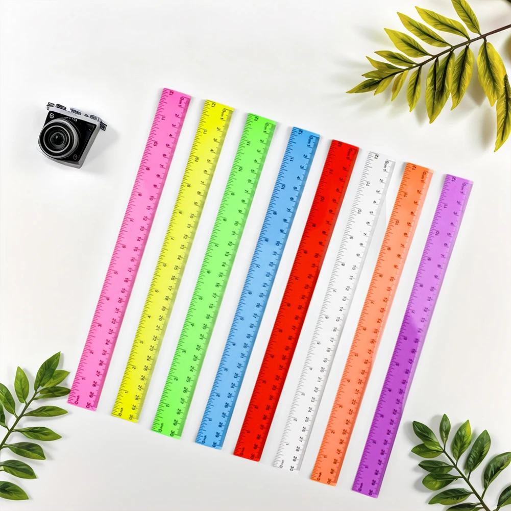Regla transparente de Color de 8 Uds., reglas de dibujo de plástico de 30CM, reglas métricas portátiles resistentes al desgaste para suministros estacionarios