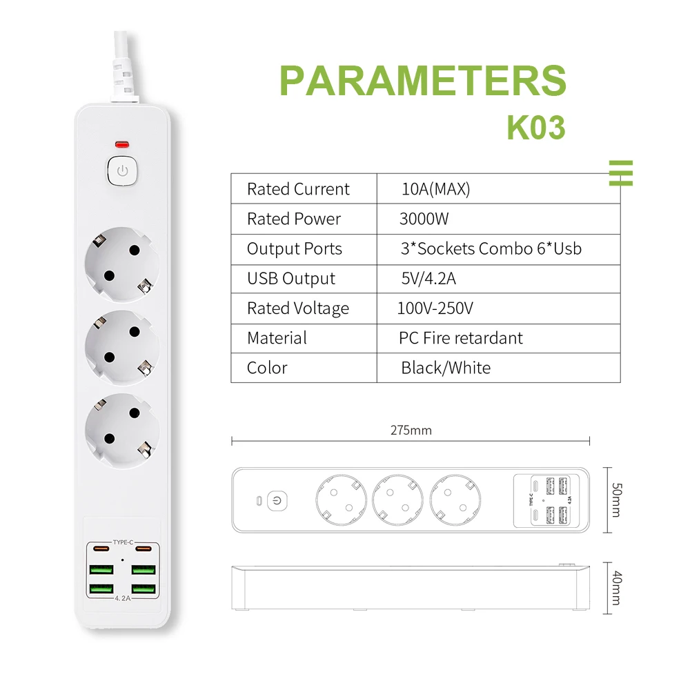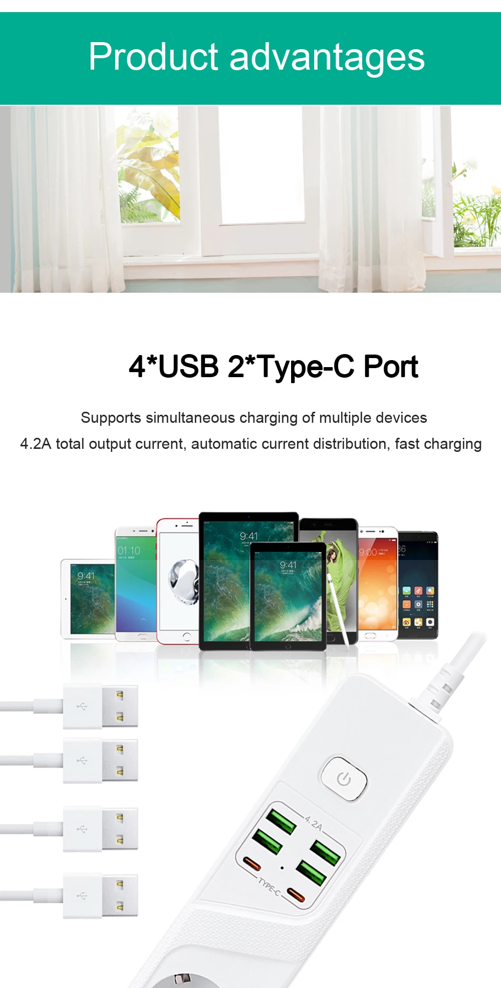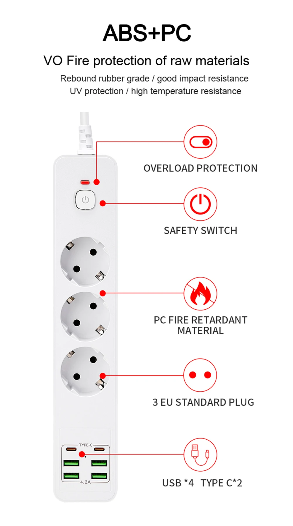 Enchufe de extensión para el hogar: enchufe de oficina con enchufe/tira de Alimentación inteligente (UE)