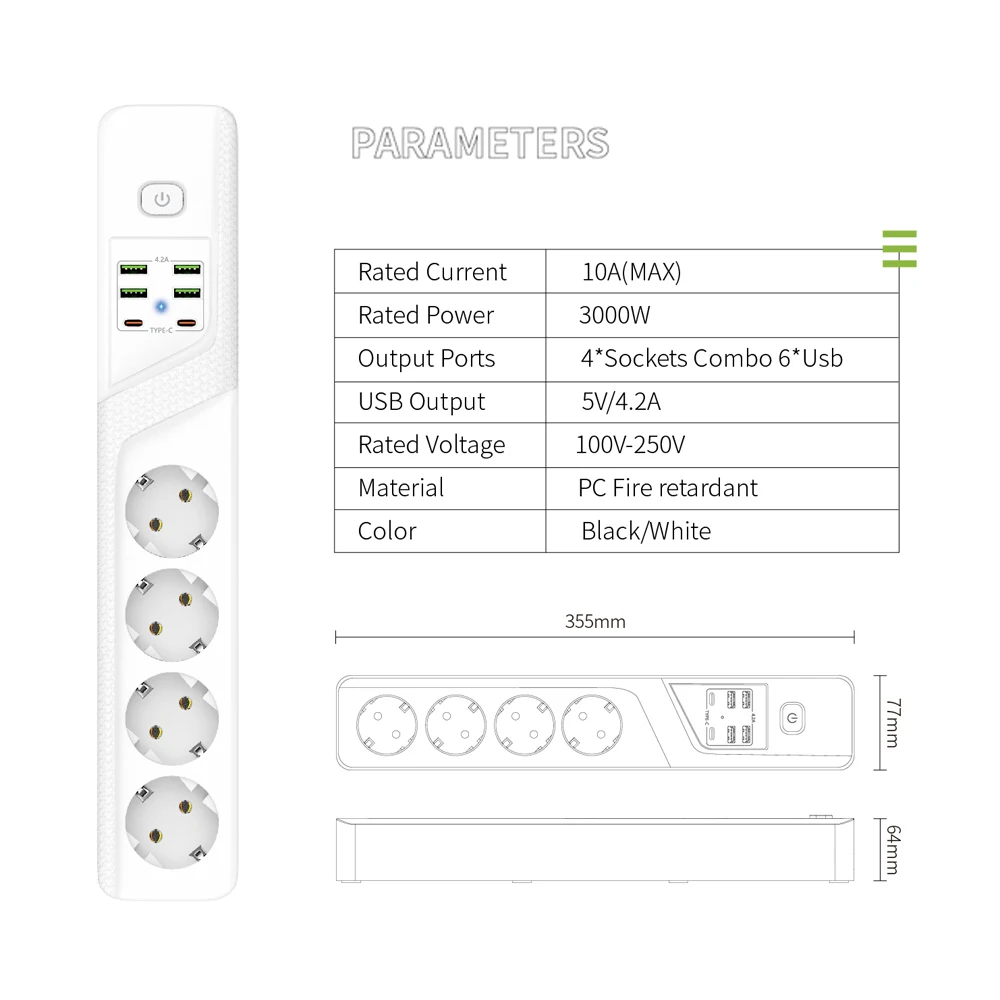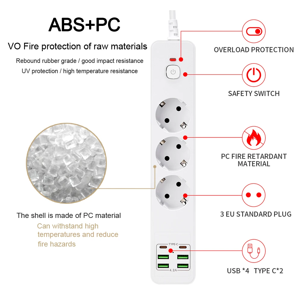 Enchufe de extensión para el hogar: enchufe de oficina con enchufe/tira de Alimentación inteligente (UE)