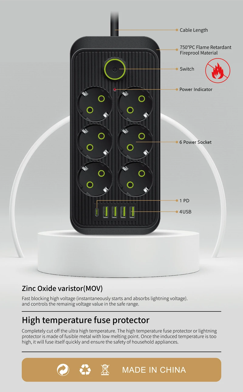 Enchufe de extensión doméstico: enchufe de oficina con enchufe/tira de Alimentación inteligente (UE)