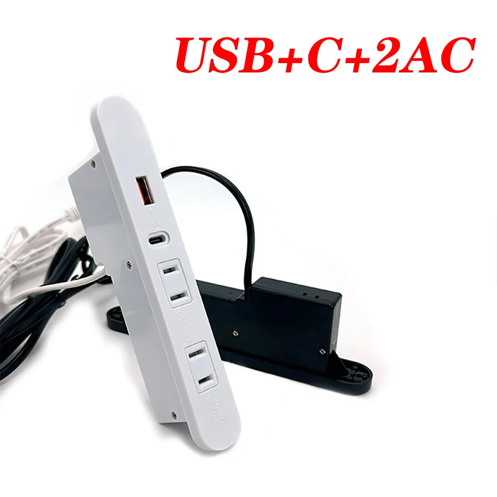 Regleta de enchufe estadounidense de 220V con 2 salidas de CA, 1 puerto USB (1 Tipo C), enchufe múltiple de pared, filtro de red Universal de carga rápida
