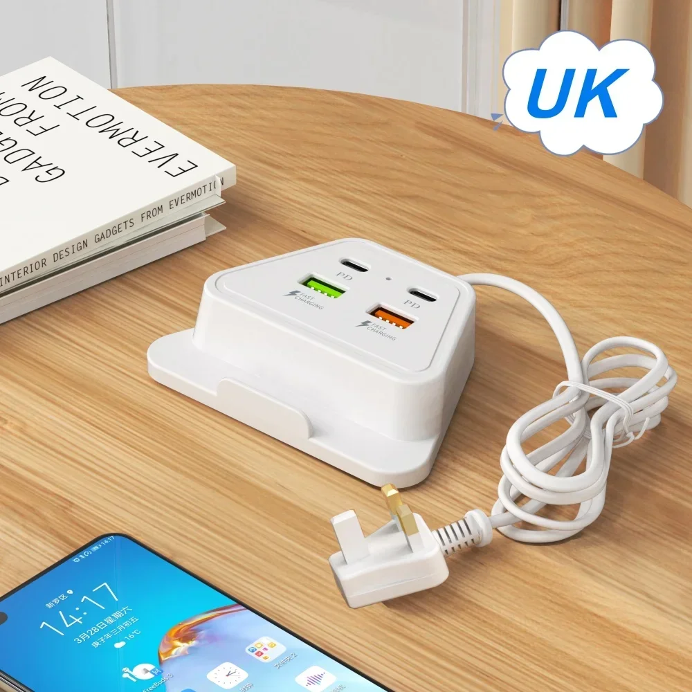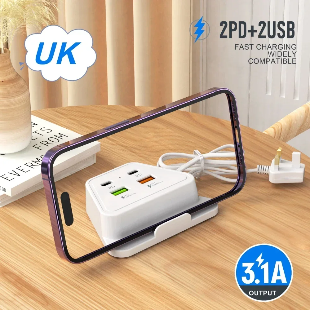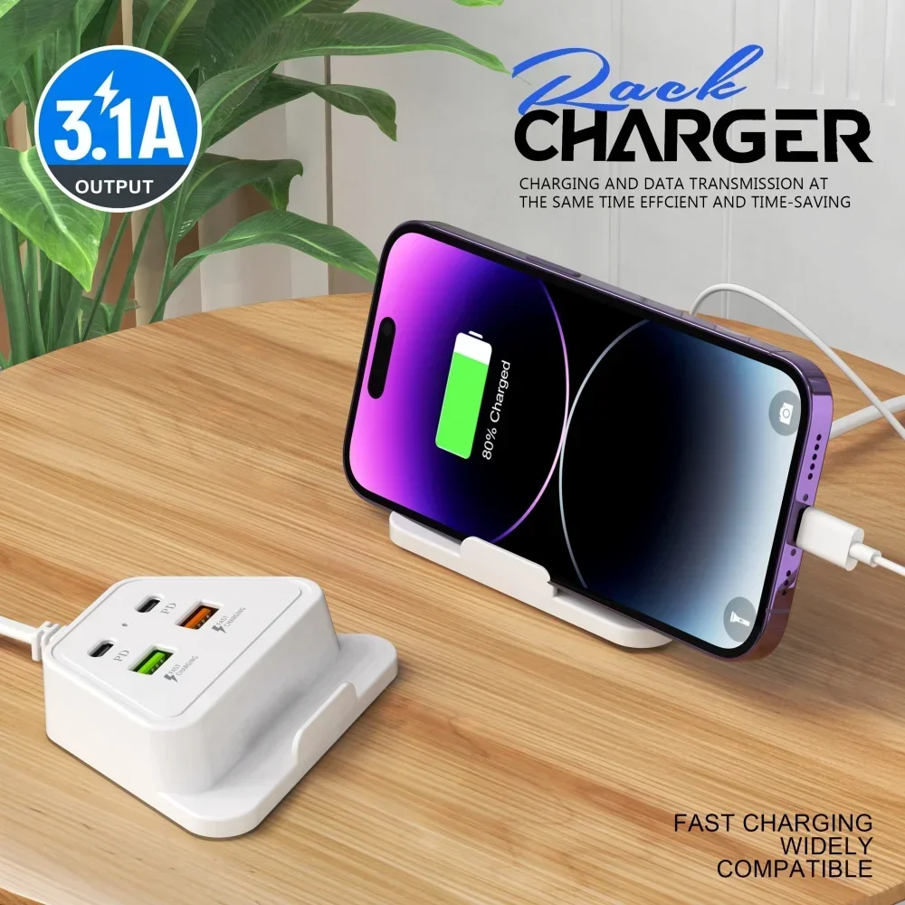 Regleta tipo C con soporte para teléfono, adaptador de teléfono con toma USB de múltiples puertos para iPhone, Xiaomi, Huawei y Samsung, cargador de teléfono móvil