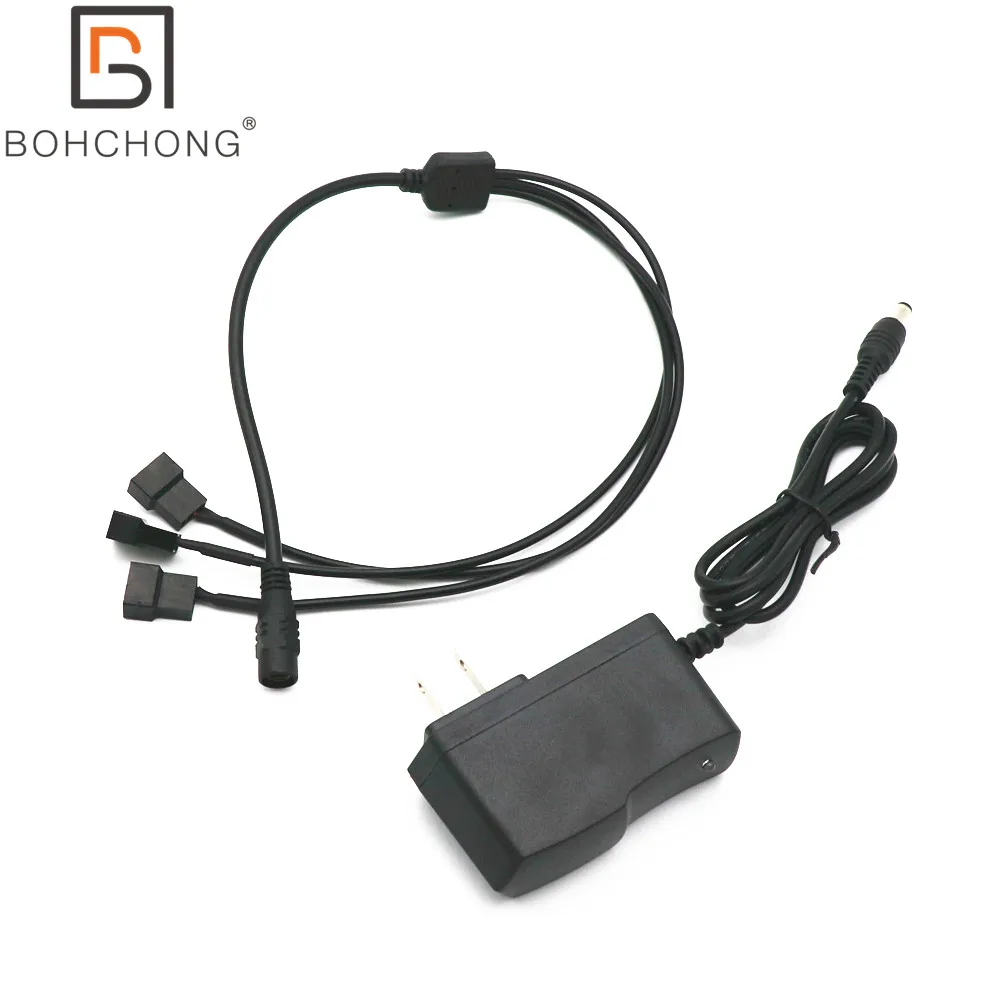 Fuente de alimentación de 12V CC con regulación de EE. UU., cables adaptadores de 5,5*2,1mm para 3 uds., 3 pines, 4 pines, Cable de ventilador de caja de ordenador PWM