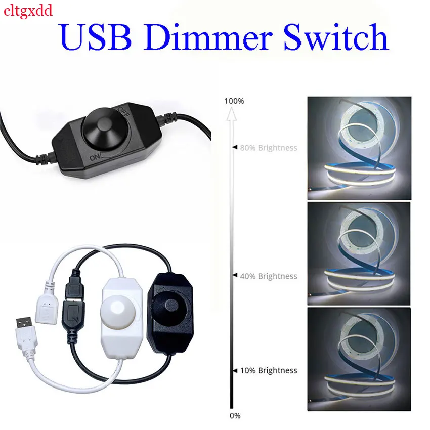 Comprar Regulador de intensidad de perilla USB, accesorio de iluminación de 5V, 1 piezas, DC5V, aplicable a barra LED 0-100% PWM, controlador de perilla manual, interruptor de atenuación