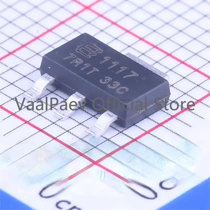 Regulador lineal (LDO), BL1117, BL1117-33C, BL1117-33CX, SOT-223, Vin positivo = 12V Vout = 3,3 V, 1A, 60dB @(120Hz), 50 unidades por lote