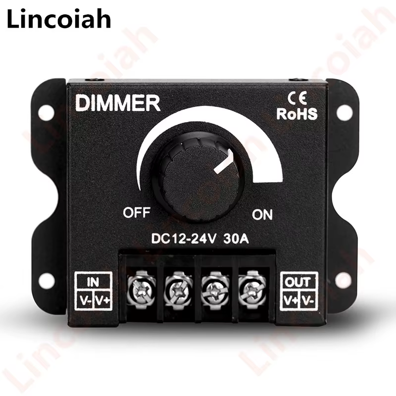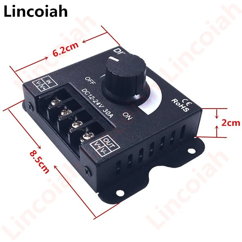 Lincoiah DC 12V-24V interruptor de atenuación LED 30A 360W regulador de voltaje controlador ajustable para lámpara de tira de luz LED atenuadores de atenuación LED