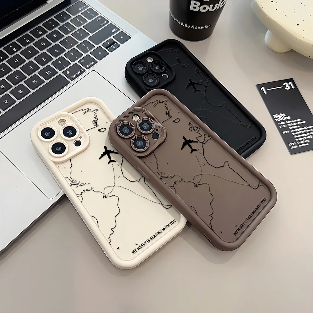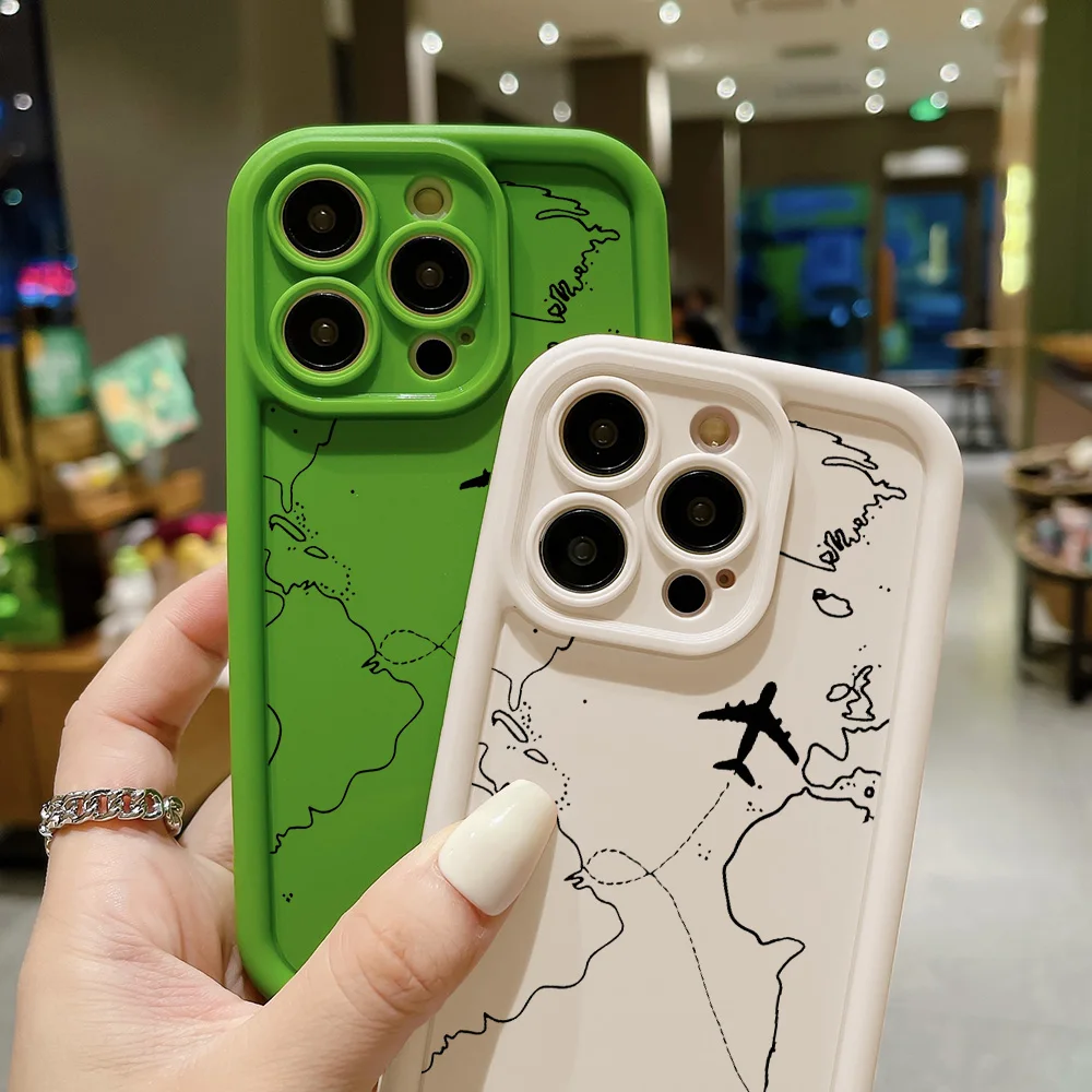 Reise-inspirierte Flugzeug-Route-Design-Silikon-Handyhülle für iPhone 13 15, 12, 12, 40, 40, 40, Pro, Max, 7, 8, Über, XR, XS x SE, matte Hülle