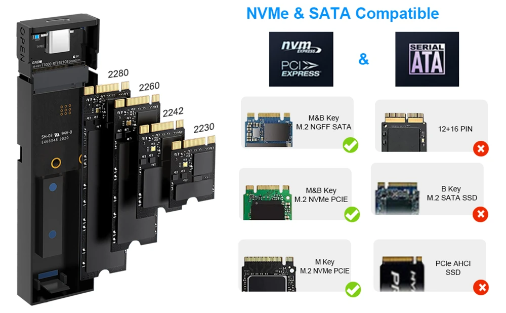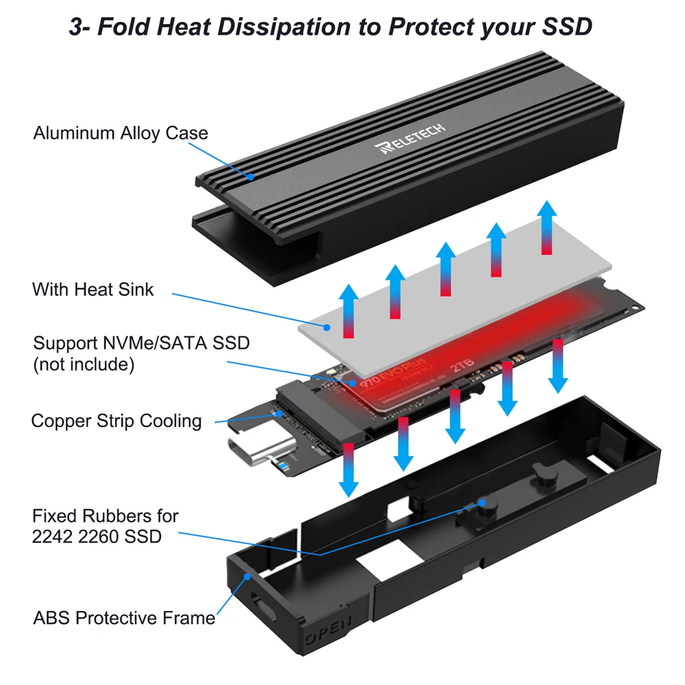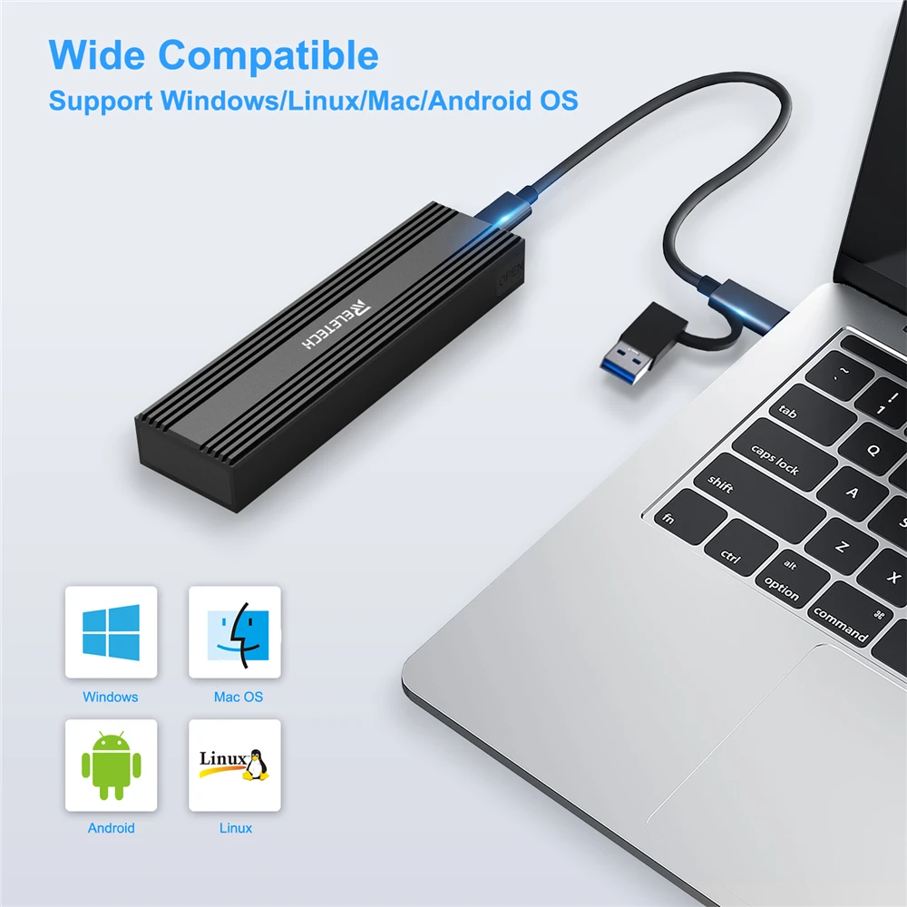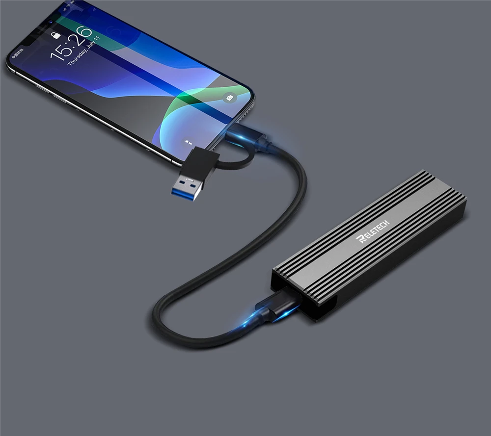 Comprar Relatech-carcasa de disco duro portátil M2 SSD, USB3.1 tipo C, 10Gps, compatible con dos protocolos NVMe/SATA, adecuado para MacBook