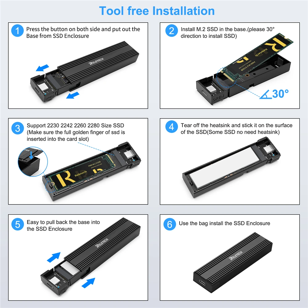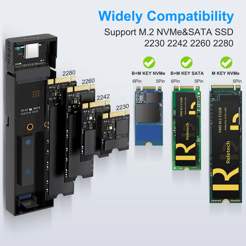 Comprar Relatech-carcasa de disco duro portátil M2 SSD, USB3.1 tipo C, 10Gps, compatible con dos protocolos NVMe/SATA, adecuado para MacBook